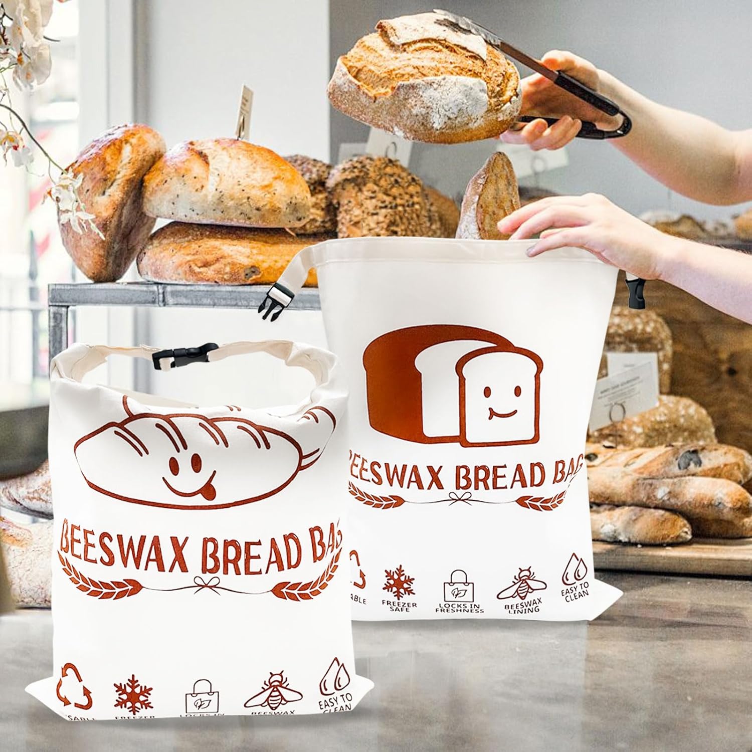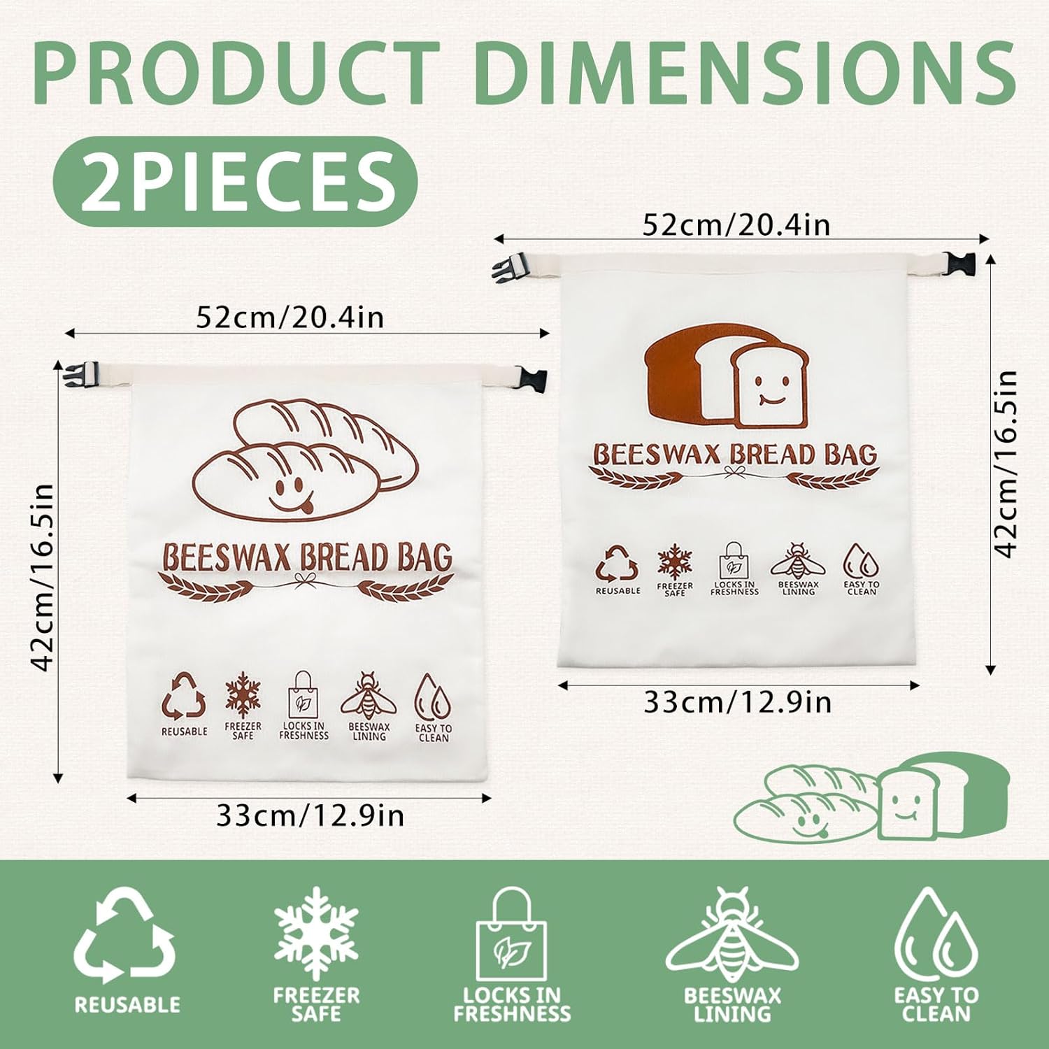 - REUSABLE DESIGN: Set of 2 beeswax-coated cotton bread bags perfect for storing homemade sourdough and other breads while keeping them fresh longer