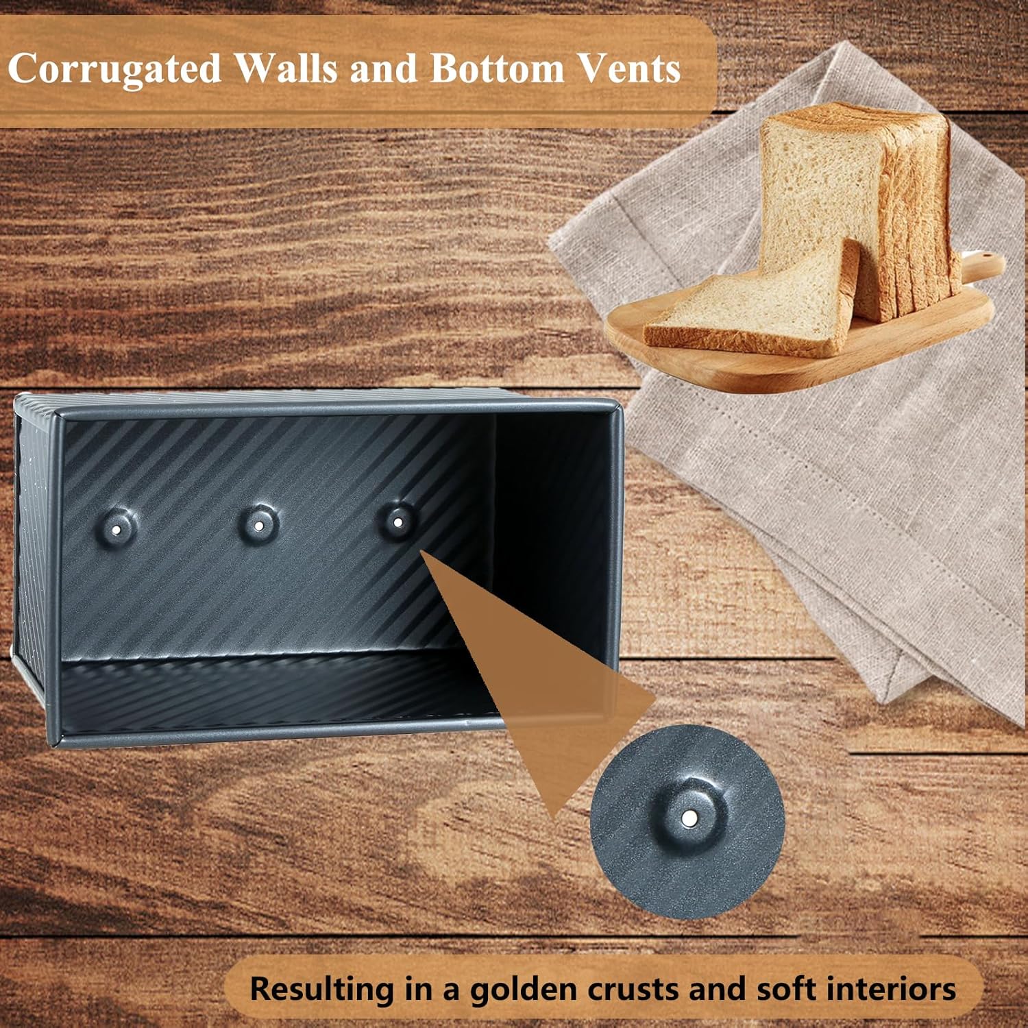 - PREMIUM QUALITY & EASY RELEASE: Food-safe nonstick PTFE/PFOA-free coating ensures effortless bread removal without residue. Corrugated walls and bottom vents enhance air circulation for golden crusts and soft interiors. Perfect for gluten-free, whole grain, or Japanese milk bread.