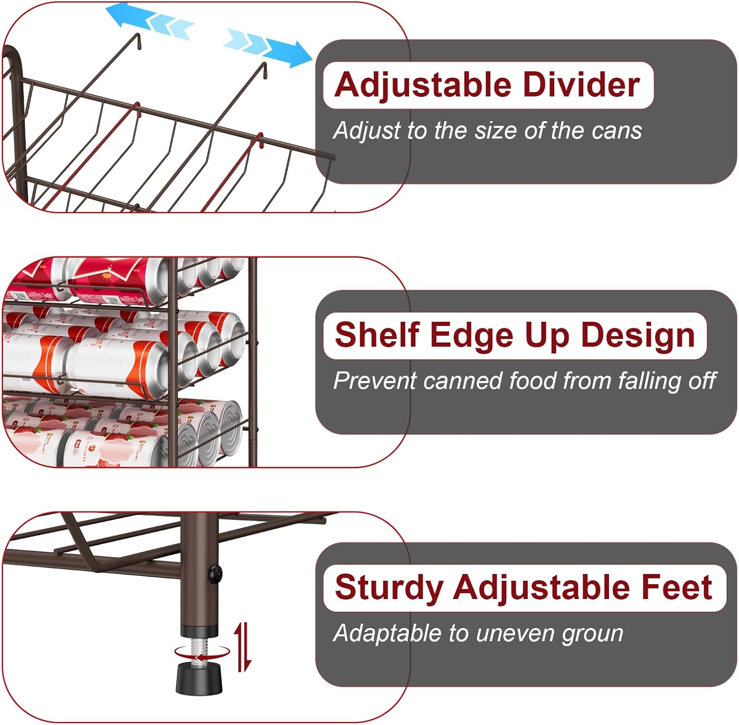 - 【5 Tier Can Organizer】This pantry can organizer can hold up to 60 variety-size cans/jars(Each tier can store up to 12 cans), which is a reliable can organizer for the pantry shelf, kitchen cabinet, and countertop.