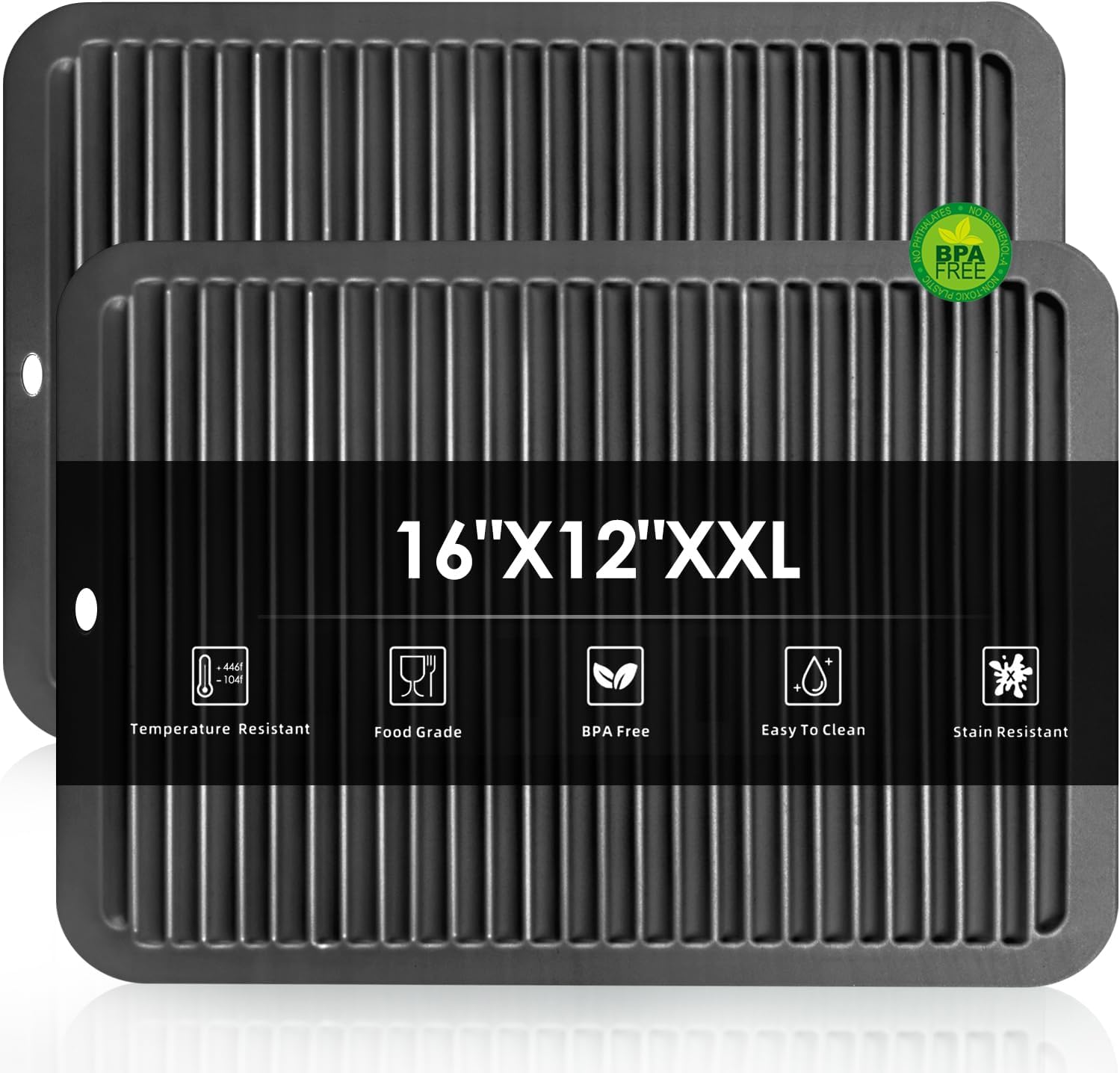 2 Pcs Silicone Trivets Black 16'' X 12'' Nonslip and Heat Resistant Hot Pads Trivets for Hot Pots and Pans Hot Pads for Kitchen(Black)