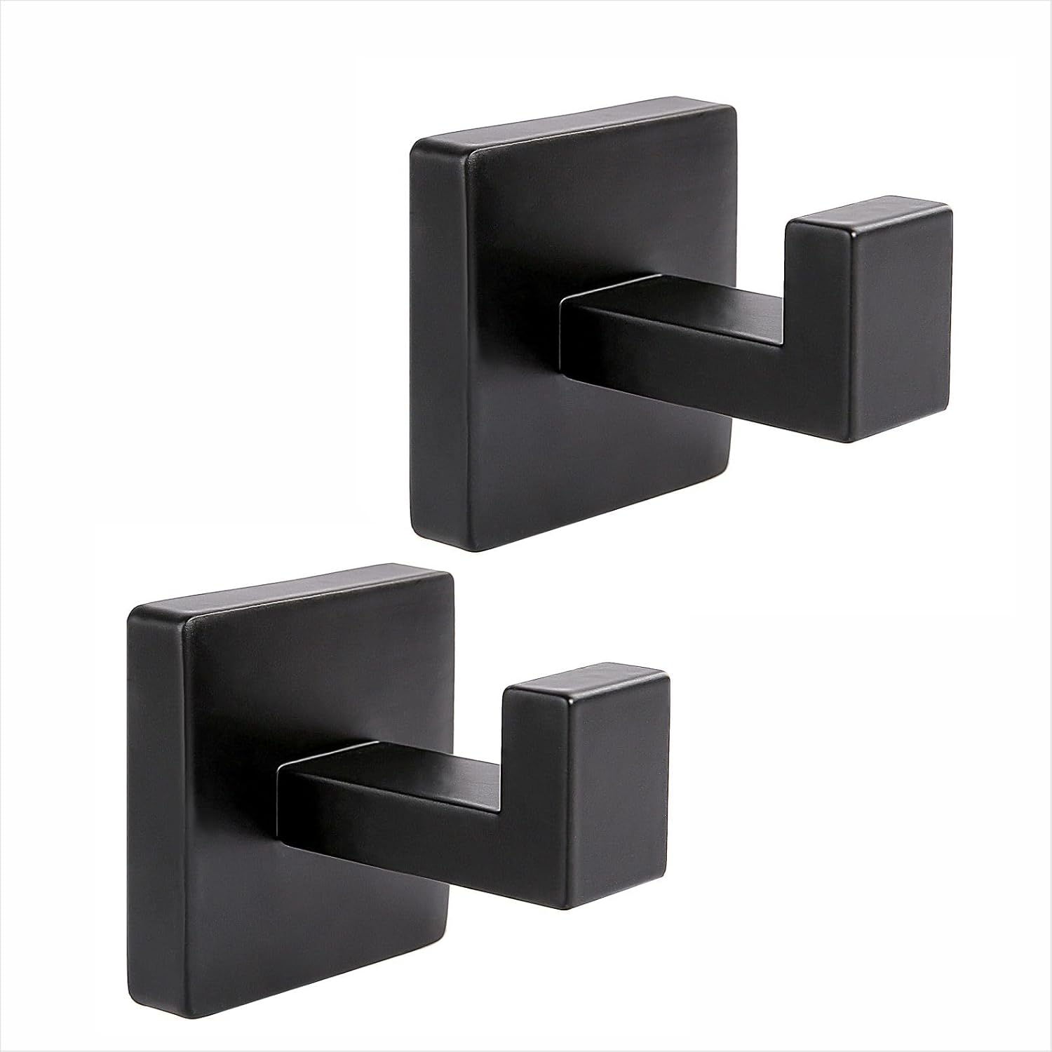 Matte Black Robe & Towel Hooks, Heavy Duty SUS 304 Stainless Steel, Wall Mounted, 2 Pack, Modern Design for Bathroom, Kitchen, and Bedroom