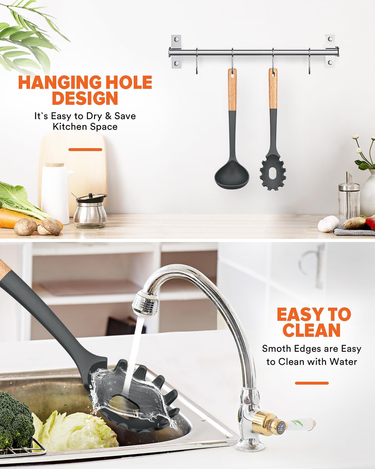 - Stylish & Functional: Modern hues blend with any kitchen; serrated edge lifts noodles/pasta easily; deep bowl ladle securely holds soups