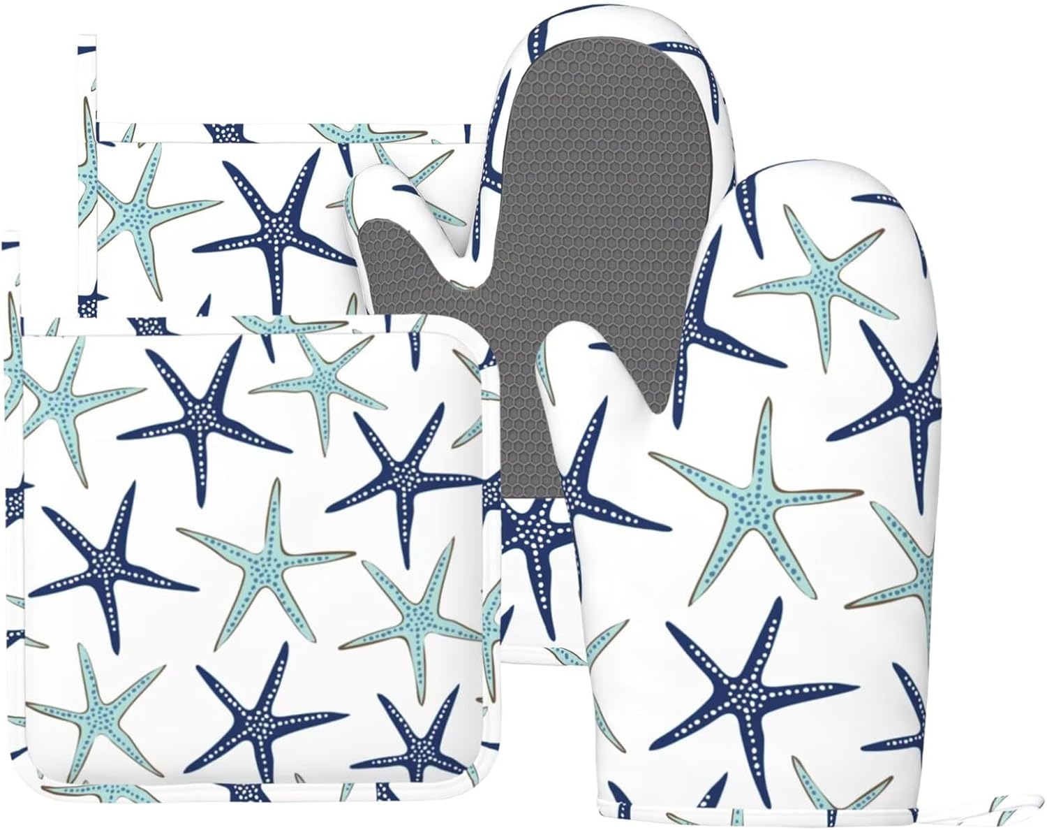 - NON-SLIP GRIP: The nautical starfish oven mitts feature a textured, non-slip surface that enhances your grip and control when handling hot items. This provides you with a secure hold, reducing the risk of accidental slips or drops while transferring dishes from the oven or stovetop