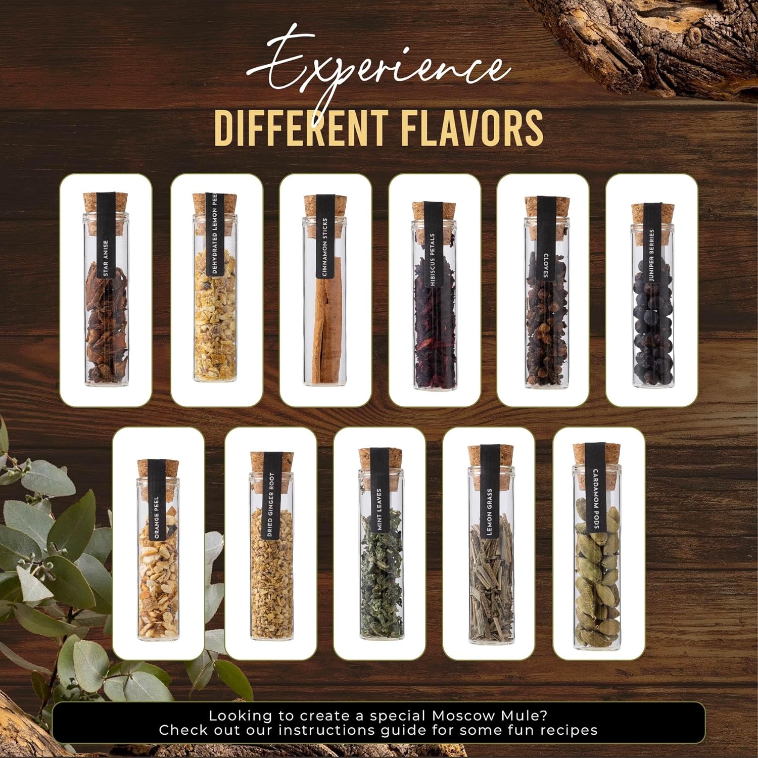 - INFUSE LIKE A PRO โ 11 PREMIUM BOTANICALS + BONUS RECIPE BOOK - Unlock mixology magic with star anise, juniper berries, cardamom, cloves, cinnamon sticks, lemongrass, hibiscus, mint, orange peels, lemon peel, ginger root & lime. Includes cocktail recipe book to inspire endless creations!