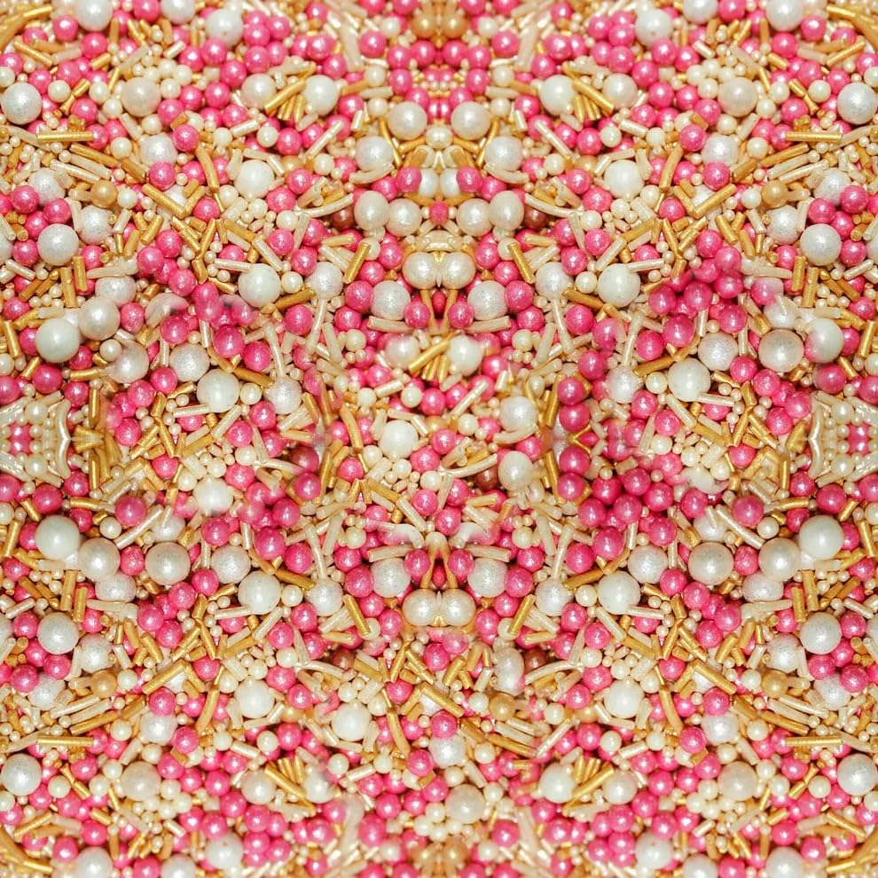 - PREMIUM BLEND: Beautiful mix of rose gold and pearl sprinkles featuring metallic sugar pearls and decorative shapes for stunning cake decoration