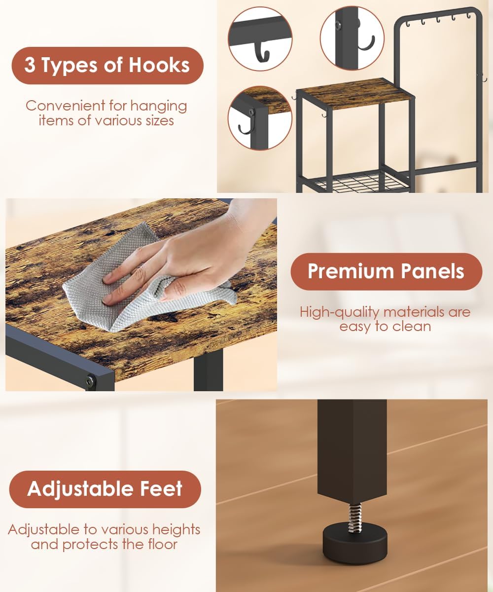 - 【Special Design】: Our kitchen storage rack features 4 adjustable foot pads. They not only protect the floor from damage but also allow you to adjust to different heights to suit your needs. Before purchasing this cookware organizer, please make sure to measure whether there is sufficient space available for storage. ( Product dimensions: 30.7'' L × 11.8'' W × 43.7'' H )