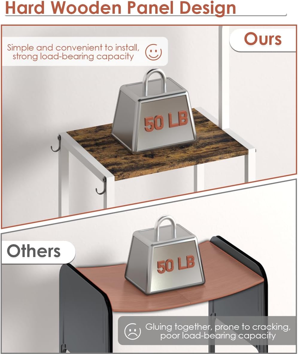 - 【Multifunctional Pots and Pans Organizer】: Our pot racks for kitchen is not only suitable for storing cooking utensil, but also can hold other kitchen items, such as lids, pots, pans ect, making full use of every available space. Moreover, it can also be used as a microwave cart, coffee bar, bread rack, plant shelf etc. Perfectly matching your life needs and making full use of your space.