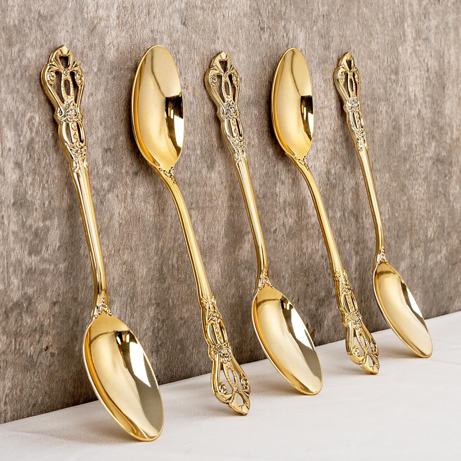- Elegant Design: The vintage gold plastic spoons are adapt to the hollow design make these gold spoons disposable perfect for elevating any table setting, from weddings to themed parties. It includes 150 gold plastic spoons disposable, ensuring you have enough for every guest