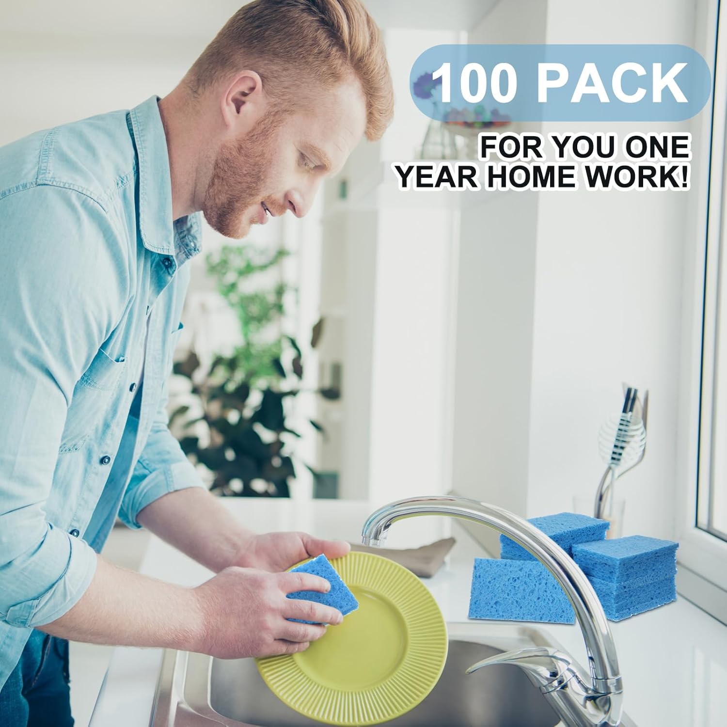 - Package Contents: you will receive 100 pieces of kitchen sponge in a package in blue colors, enough for you to use and replace in daily life, and you can share with others