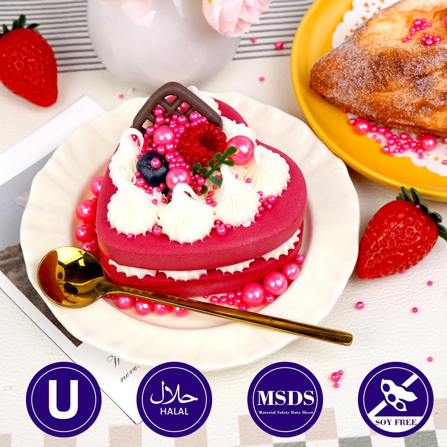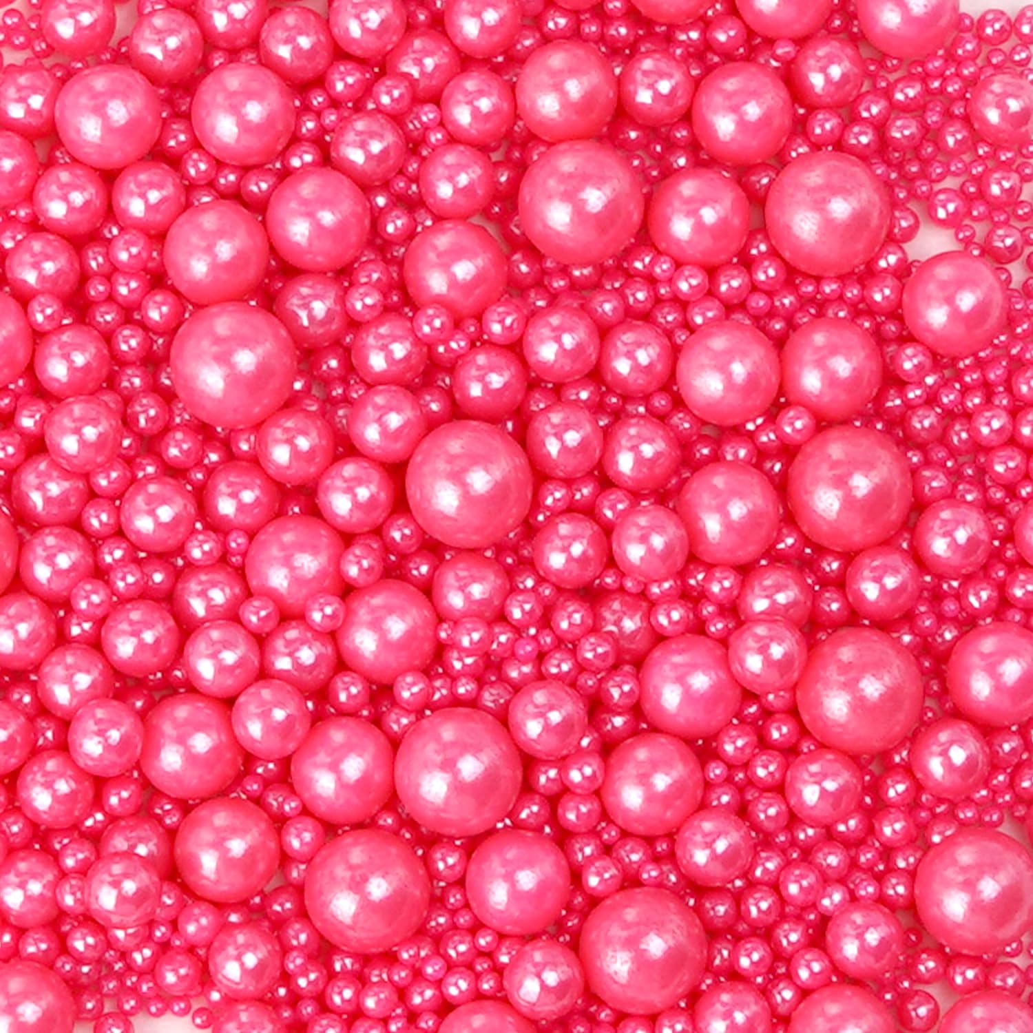 Edible Deep Pink Pearl Sprinkles, Edible Sugar Pearls, 130g/4.58oz, Pink Pearls Sprinkles for Cupcake Decorating, Cupcake Toppers, Cake Decorations