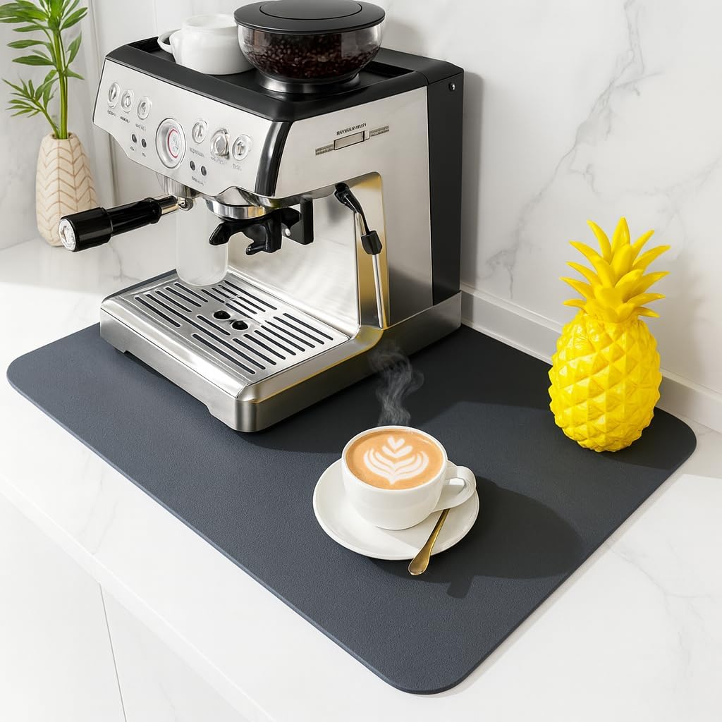 - COFFEE BAR MAT & COFFEE MACHINE ACCESSORIES – Keep your espresso station neat with this absorbent coffee bar mat, perfect for coffee makers, espresso machines, and pour-over setups. A must-have coffee station accessory and stylish coffee maker mat for countertops.