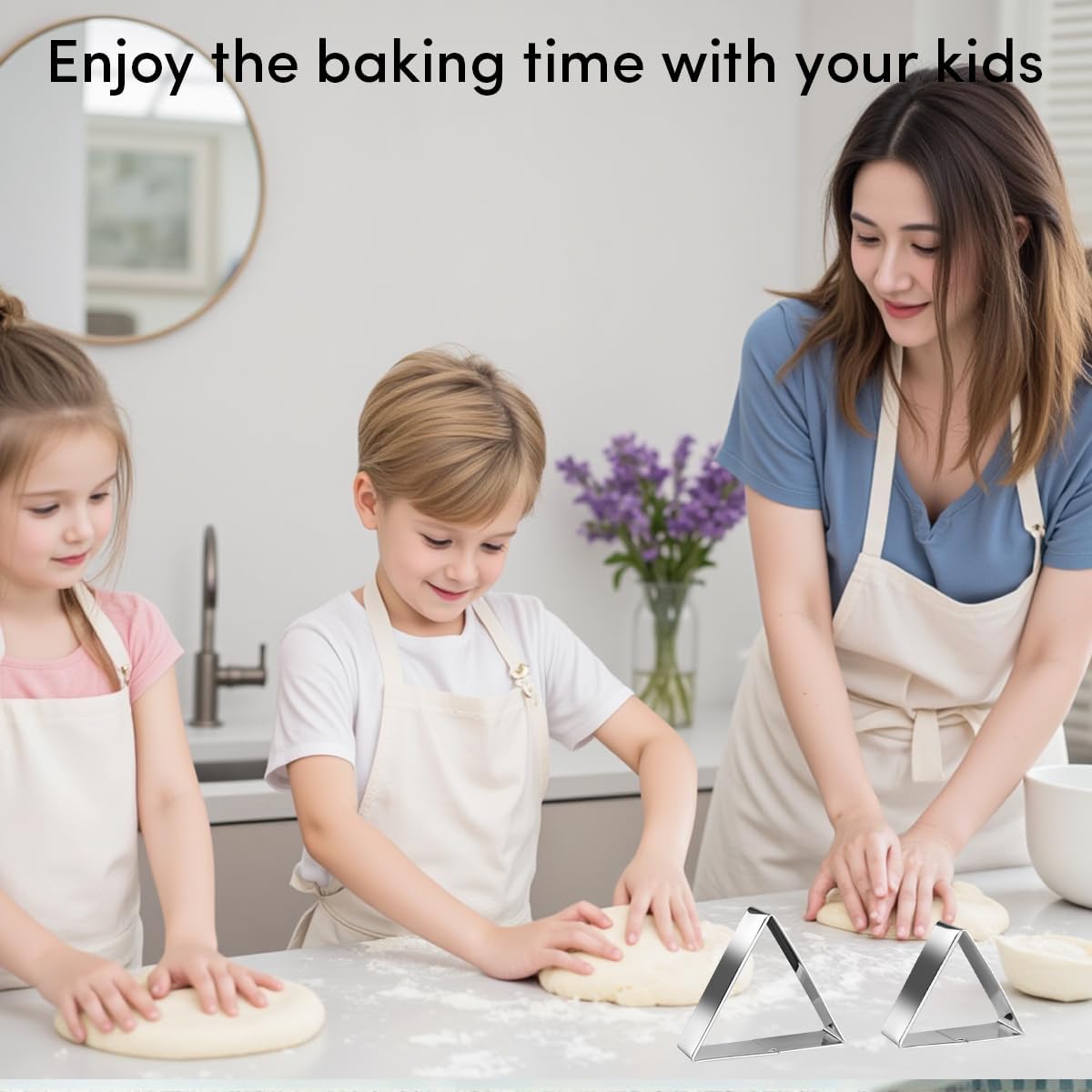 - 【Equilateral Triangle Cookie Cutter Set】 Show our equilateral triangle shaped cookie cutters biscuit fondant mold in four assorted sizes. Geometric shapes can stimulate children's spatial imagination. Let's start making these triangle cookies with kids or friends!