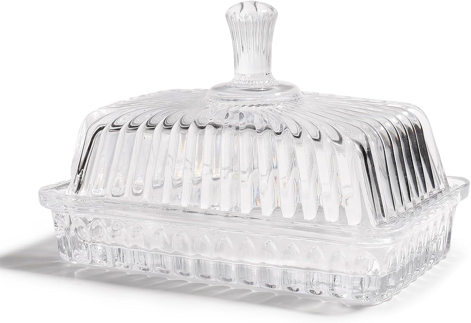 Wide Glass Butter Dish with Cover for Countertop,Vintage Crystal Butter Keeper for Counter,Covered Glass Butter Holder,Butter Holder for Refrigerator,Butter Tray with Two Stick 4oz Butter