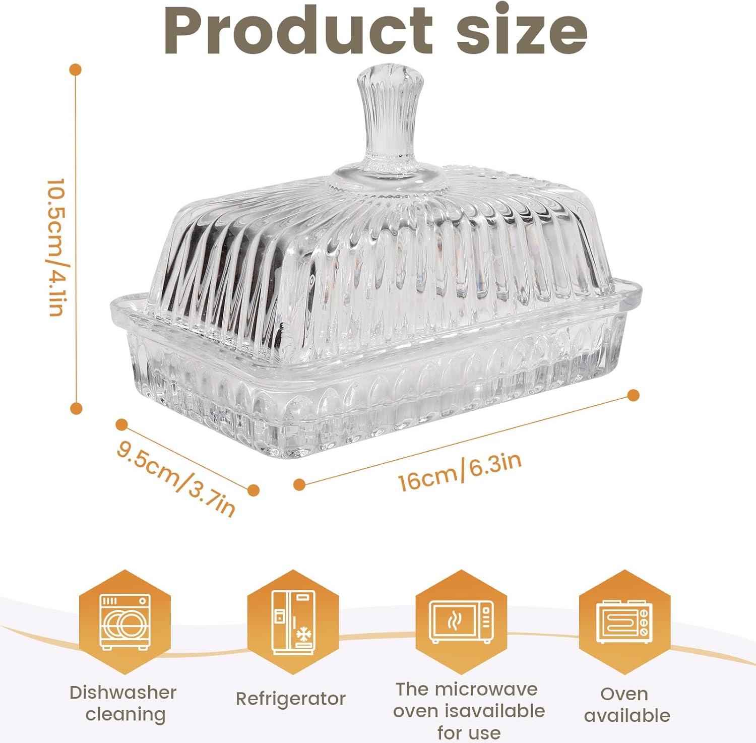 - 【Observable Glass Butter Cover】: The transparent and visual butter lid allows you to clearly observe the usage and storage of butter. The bottom and lid of the butter dish can be perfectly closed, effectively preventing air infiltration and better storing your butter or other food.