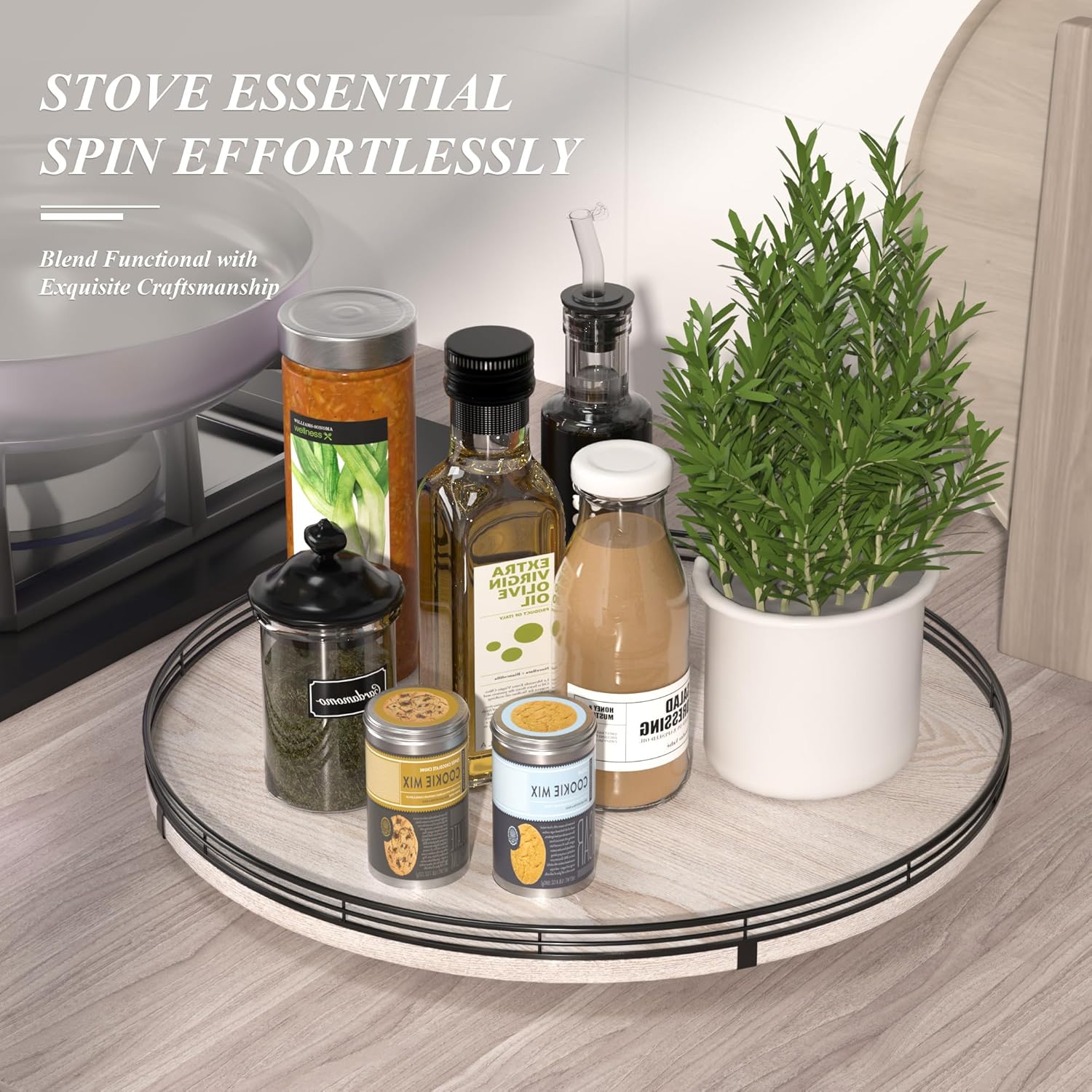 - 360 RATATING & MAXIMIZE SPACE: The base is made of solid wood and the spinning mechanism is made of steel ball bearings, which are well-built and allow for 360Β° smoothly spin. Making it super easy to access items at the back of your cabinet without having to remove everything in front. You can use it to store spices, condiments, and even small jars, and it keeps everything neatly in place.