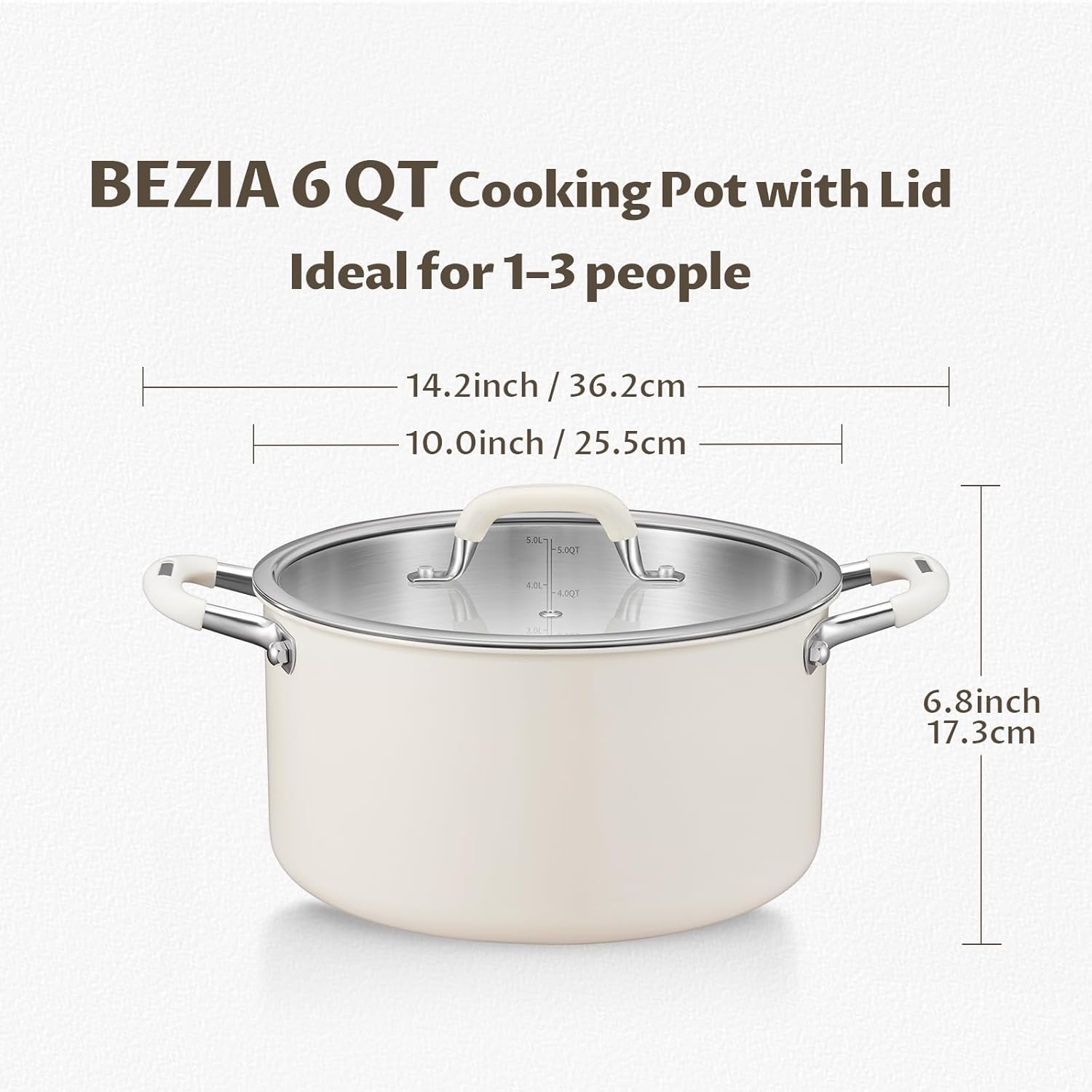 6 Quart Pot with Lid, BEZIA Tri-Ply Stainless Steel Stock Pots, Large Cooking Pots with Silicone Handle, Soup Pot for Induction Cooktop, Compatible with All Cooktops, Dishwasher Safe