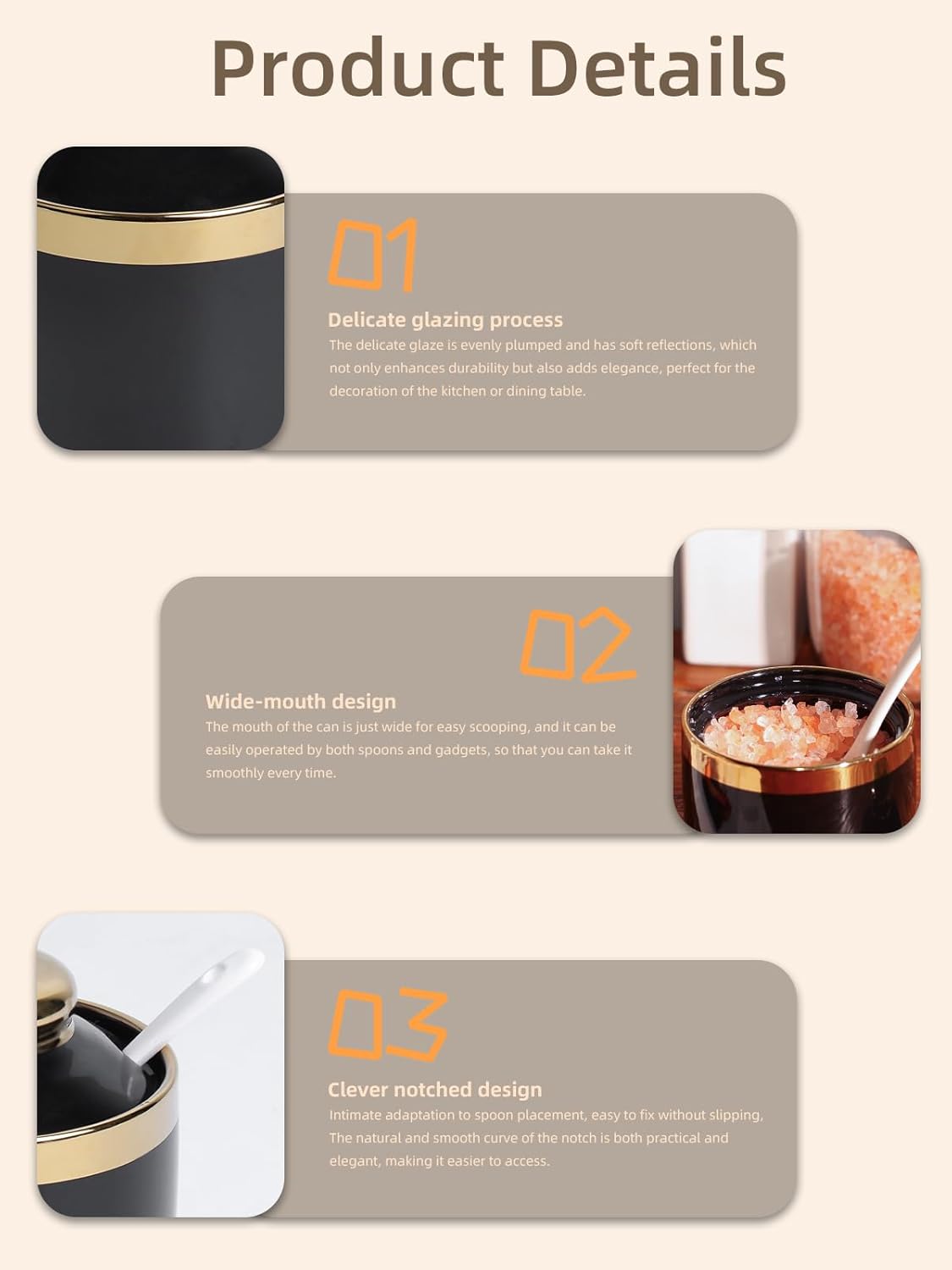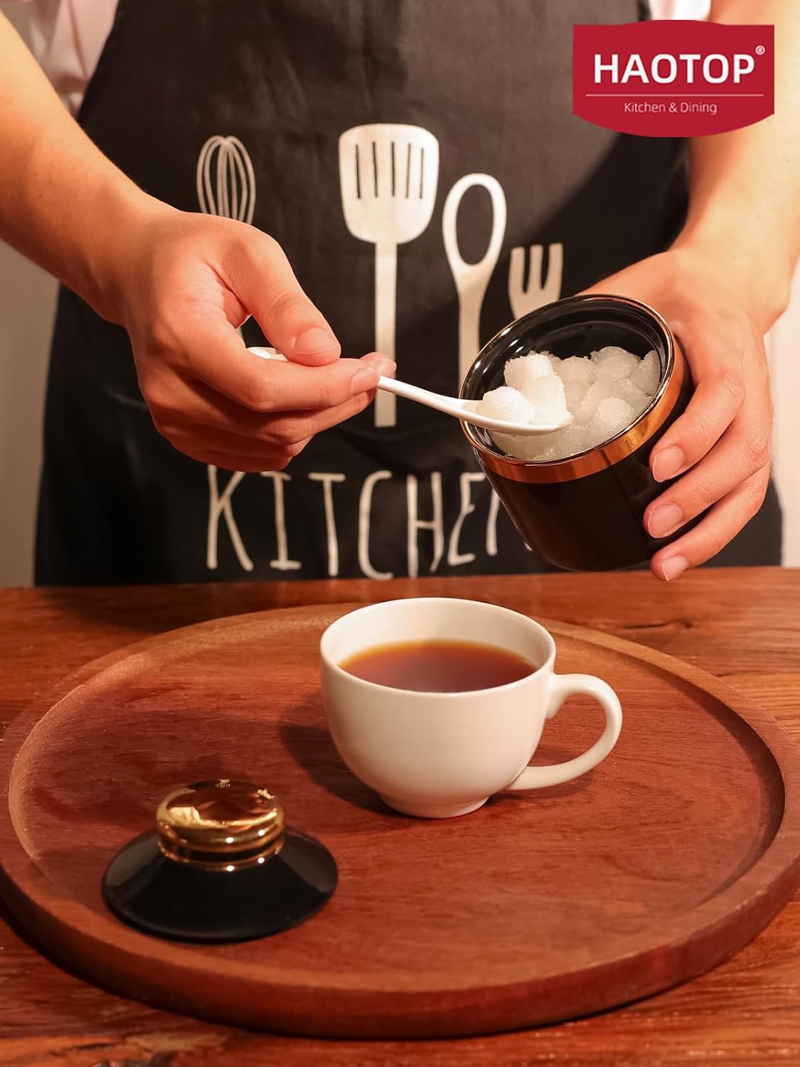 - DESIGN CONCEPT: This simple sugar bowl is equipped with a lid and a small spoon. The lid can keep your ingredients away from dust. There is a perfect notch on the lid for placing the spoon, so you donβt have to worry about placing the spoon randomly