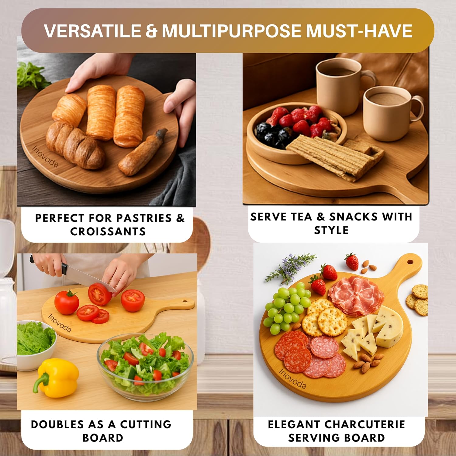 - Eco-Friendly & Durable Bamboo: Crafted from sustainable bamboo, INOVODA lightweight, moisture-resistant pizza peel is knife-friendly and easy to clean, perfect for daily kitchen use.