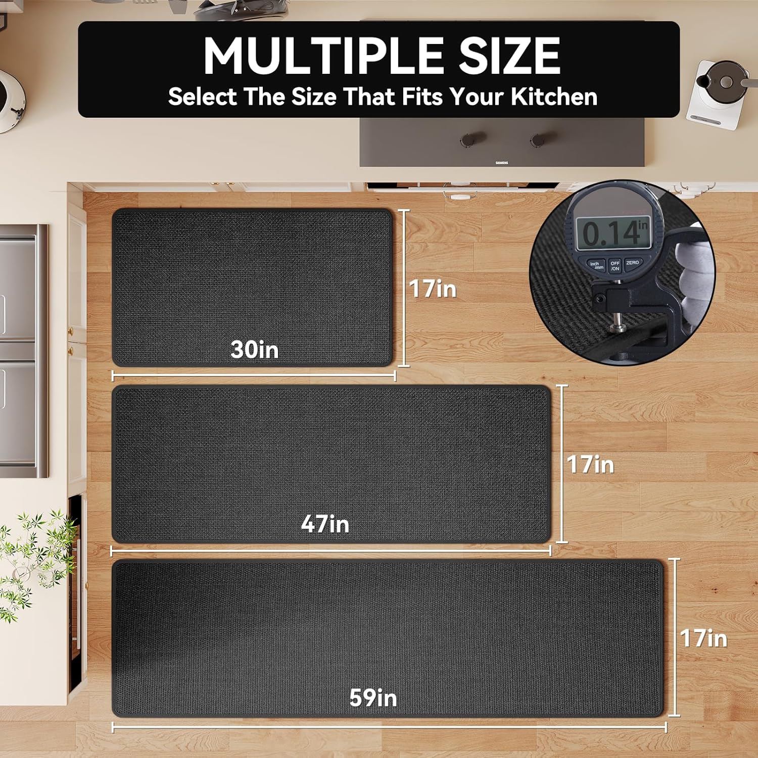 - Multi-purpose: Kitchen mats for floor widely used for home decor, in front of sink, indoor front welcome mat, living room, back doors etc.We provide two sizes to choose from: 17"x30", 17x47"οΌ17x59"