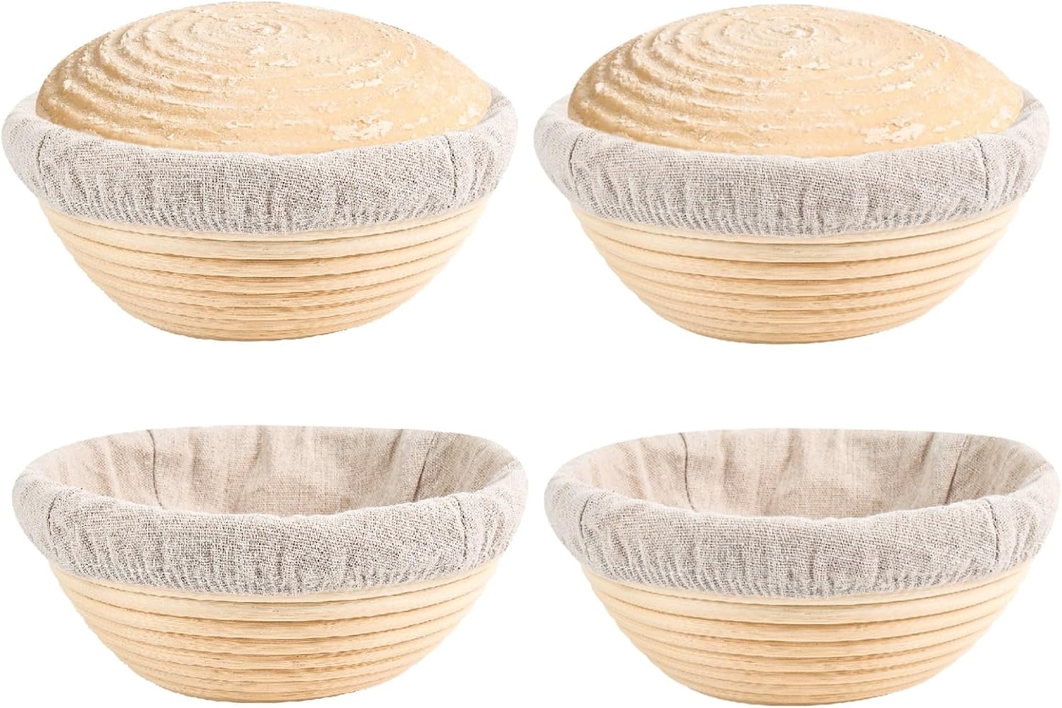 Banneton Bread Proofing Basket Set of 4PCS 6 Inch Round Sourdough Dough Proofing Bowls for Sour Dough Bread Baking Supplies, Proofing Basket or Home Sourdough Bakers Baking