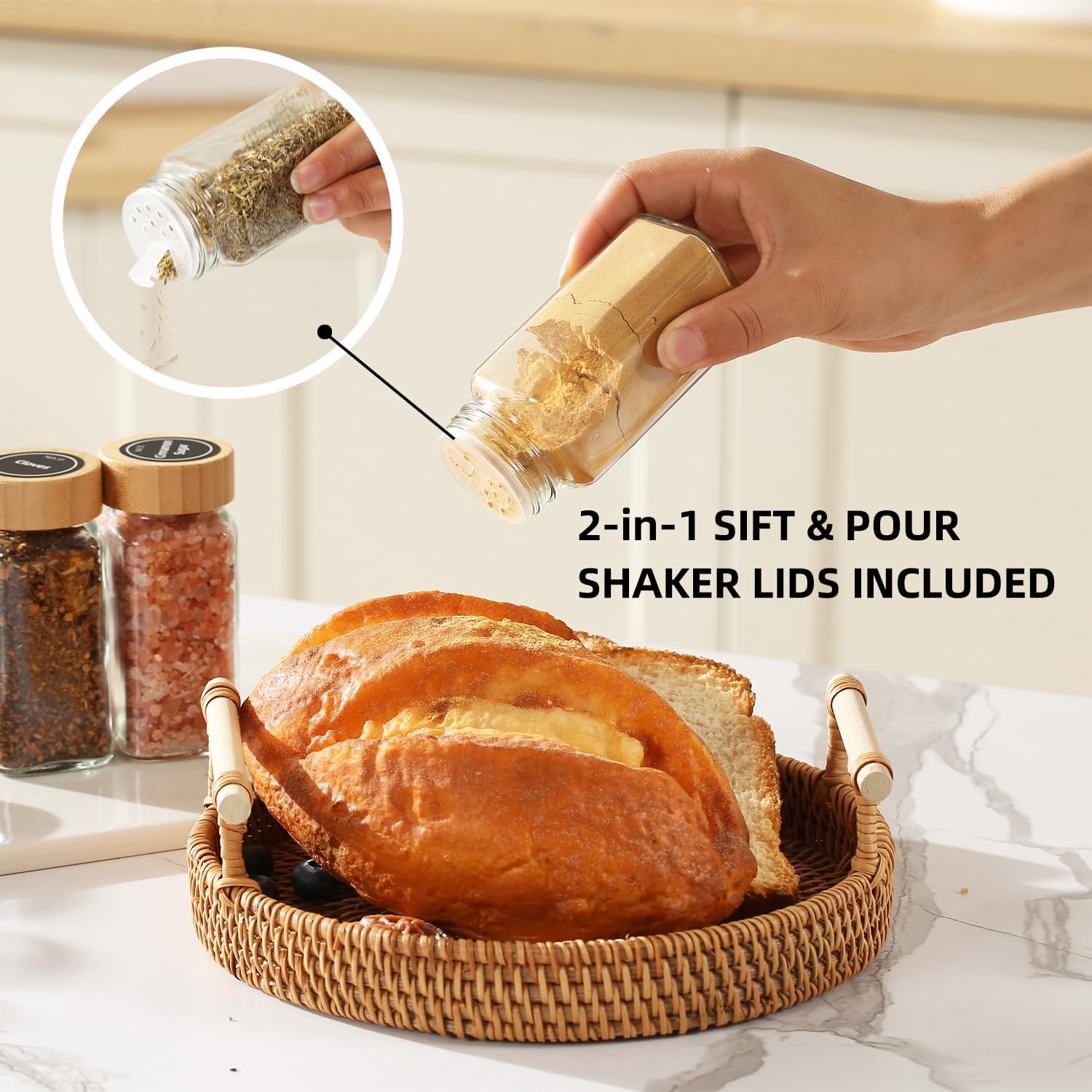4 oz Glass Spice Jars with Bamboo Lids, Clear Empty Jars with Labels Stickers, Collapsible Funnel, Seasoning Storage Bottles for Spice Racks (36 Pack)