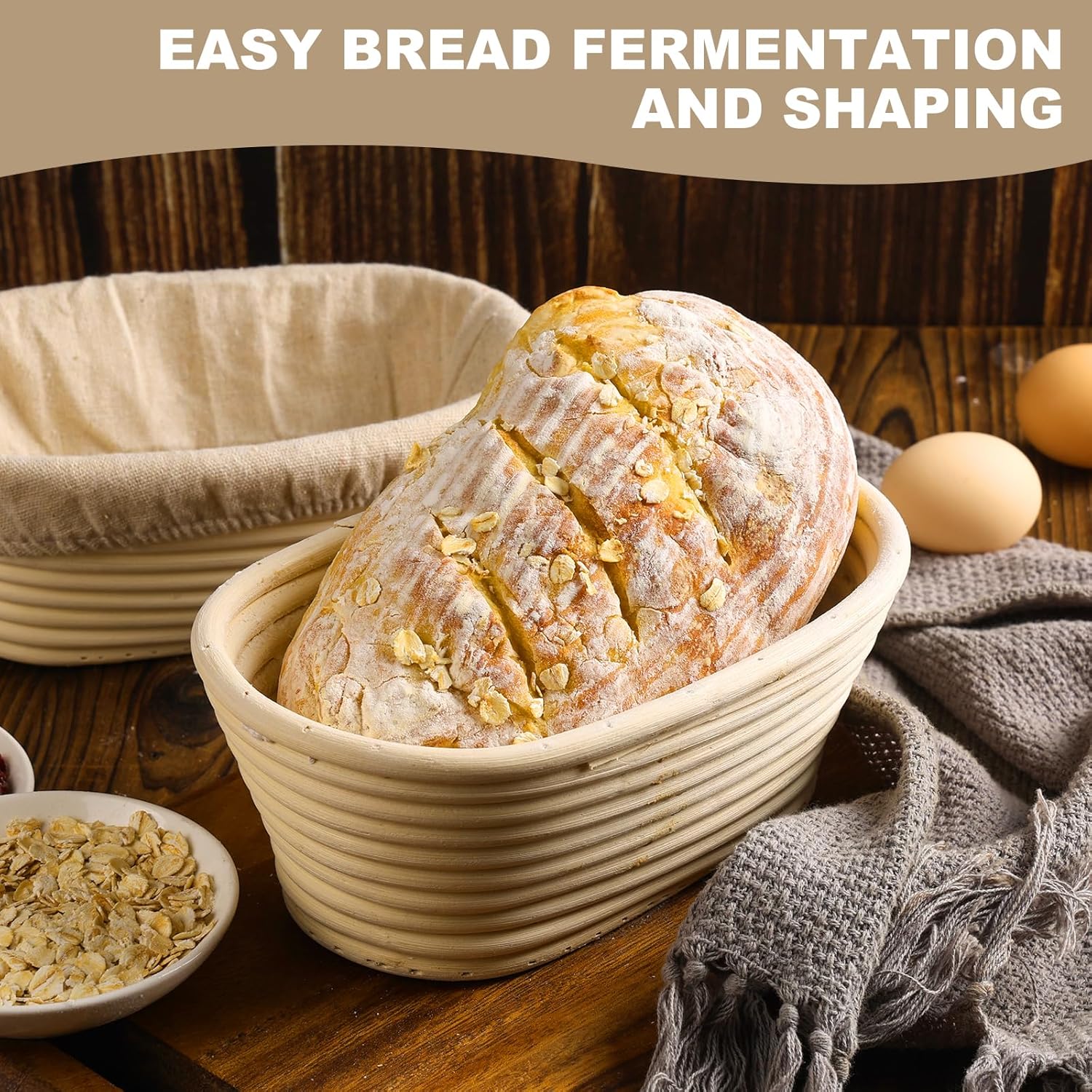Banneton Bread Proofing Basket - Banneton Basket Set of 4 Pack 8 inch Oval Sourdough Proofing Basket with Liner - Handmade Rattan Proofing Rising Bowl for Artisan Bread Making Baking Supplies