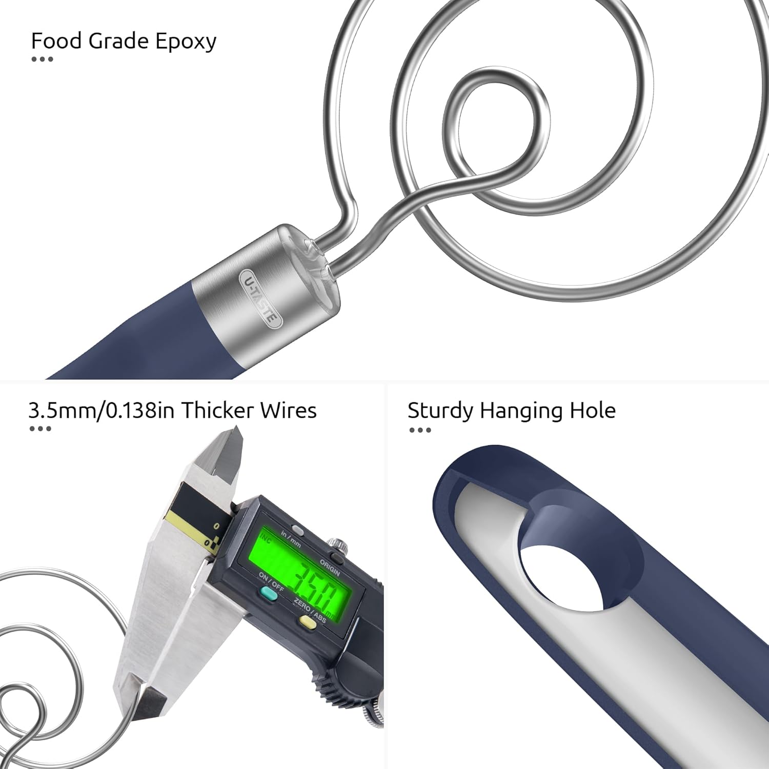 U-Taste 12.6" Danish Dough Whisk: 18/8 Stainless Steel Heavy-Duty Sourdough Mixer Tool, Food Grade Dutch Style Seamless Bread Wisk, Sturdy for Mixing, Stirring, Kneading Thick Batter (Midnight Blue)