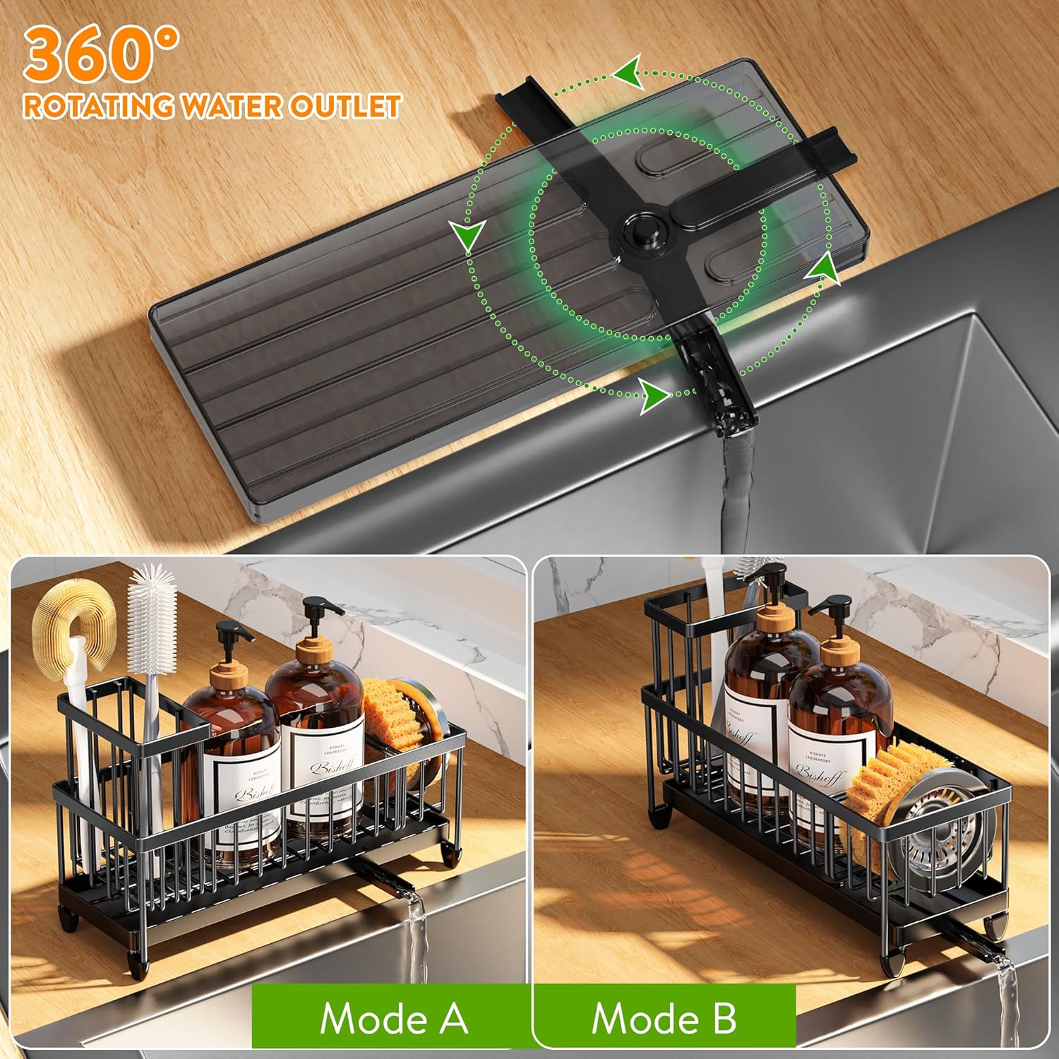 - 【STABLE DRAIN TRAY & AUTOMATIC DRAINAGE】The drain tray is fixed to the frame, so it won't come loose and drop when is use. Sloped design ensures fast drainage. This sink caddy is great for holding all the cleaning things and keeping water off the counter.
