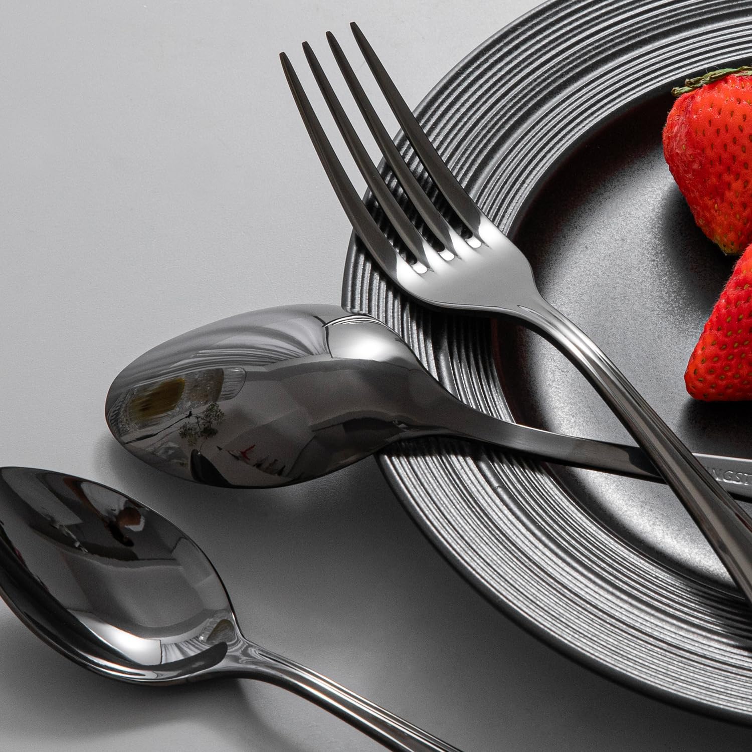 - Comfortable to hold: The silverware set is the right size and weight, neither too light nor too heavy. The high quality pure hand polishing process makes the tableware have sleek handle lines and surface without rough edges, making it comfortable to hold, enhancing your dining experience