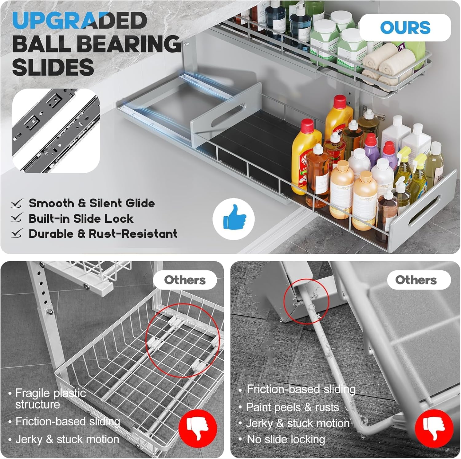 - 【Upgraded Professional Rails for Smooth Glide】Experience effortless sliding with our upgraded professional-grade rails. Both tiers feature dual pull-out drawers that glide smoothly, allowing easy access to all your essentials without hassle.