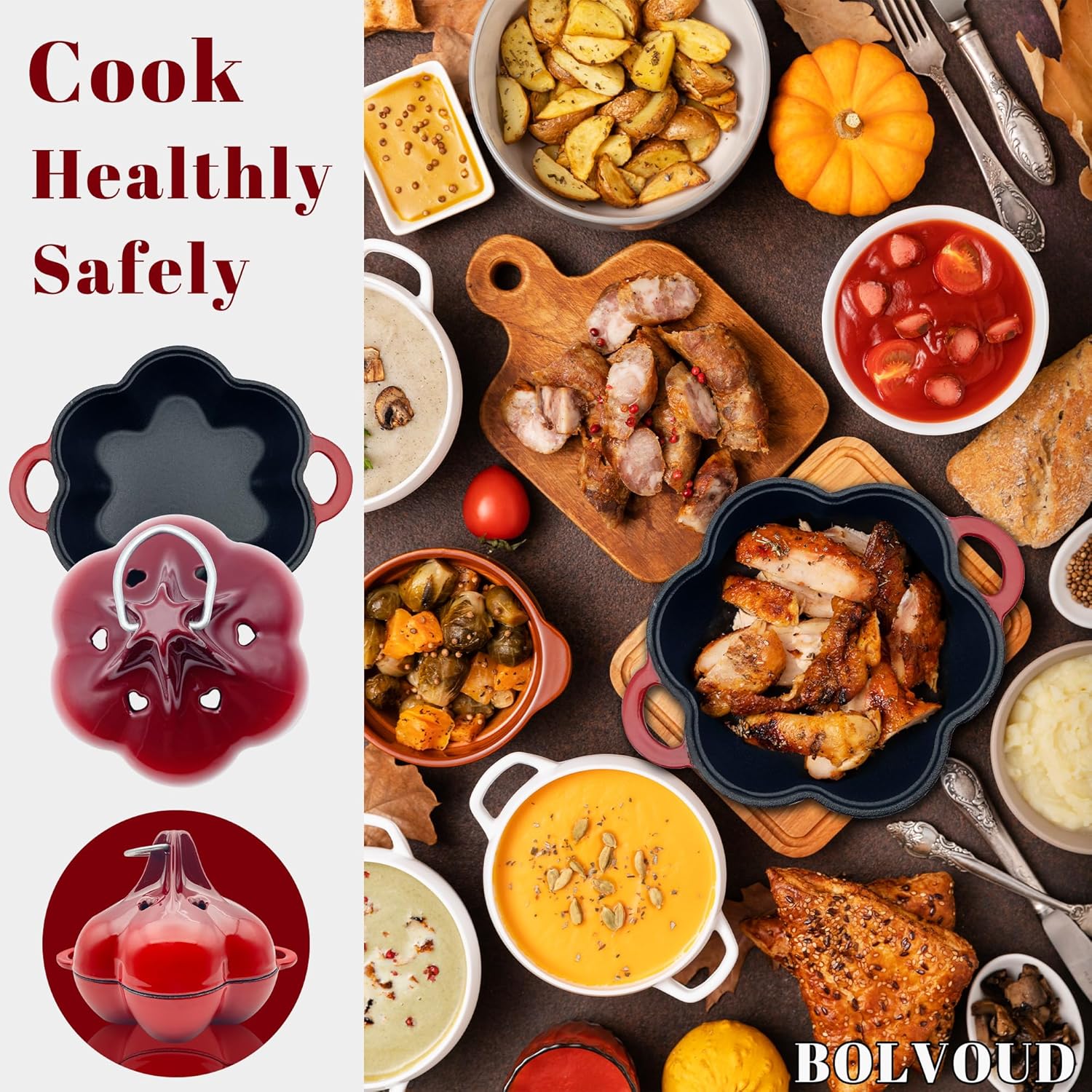 - š„ ćPremium Enameled Cast Iron Cookwareć Crafted with durable enamel-coated cast iron, this vibrant smoker box resists rust, cracking, and flavor transfer. SIZE: 7.4 x 6.1 x 5.4 inches, BOLVOUD Cast Iron Smoker Roaster doubles as a garlic roaster.