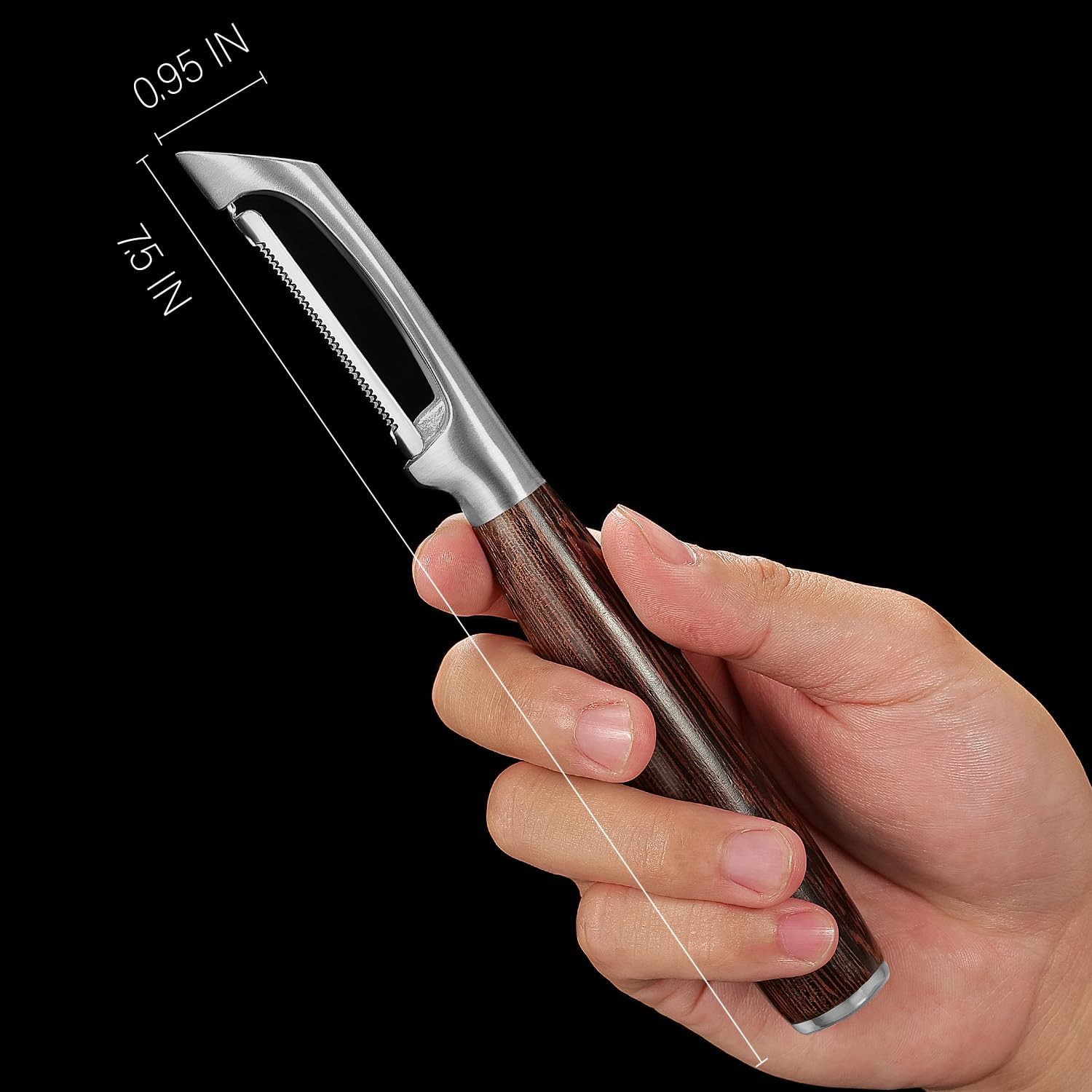 Serrated Blade Premium I Type 304 Stainless Steel Multifunctional Kitchen Peeler Real Wood Handle Ultra Sharp Blade Vegetable Potato Apple(Wenge)