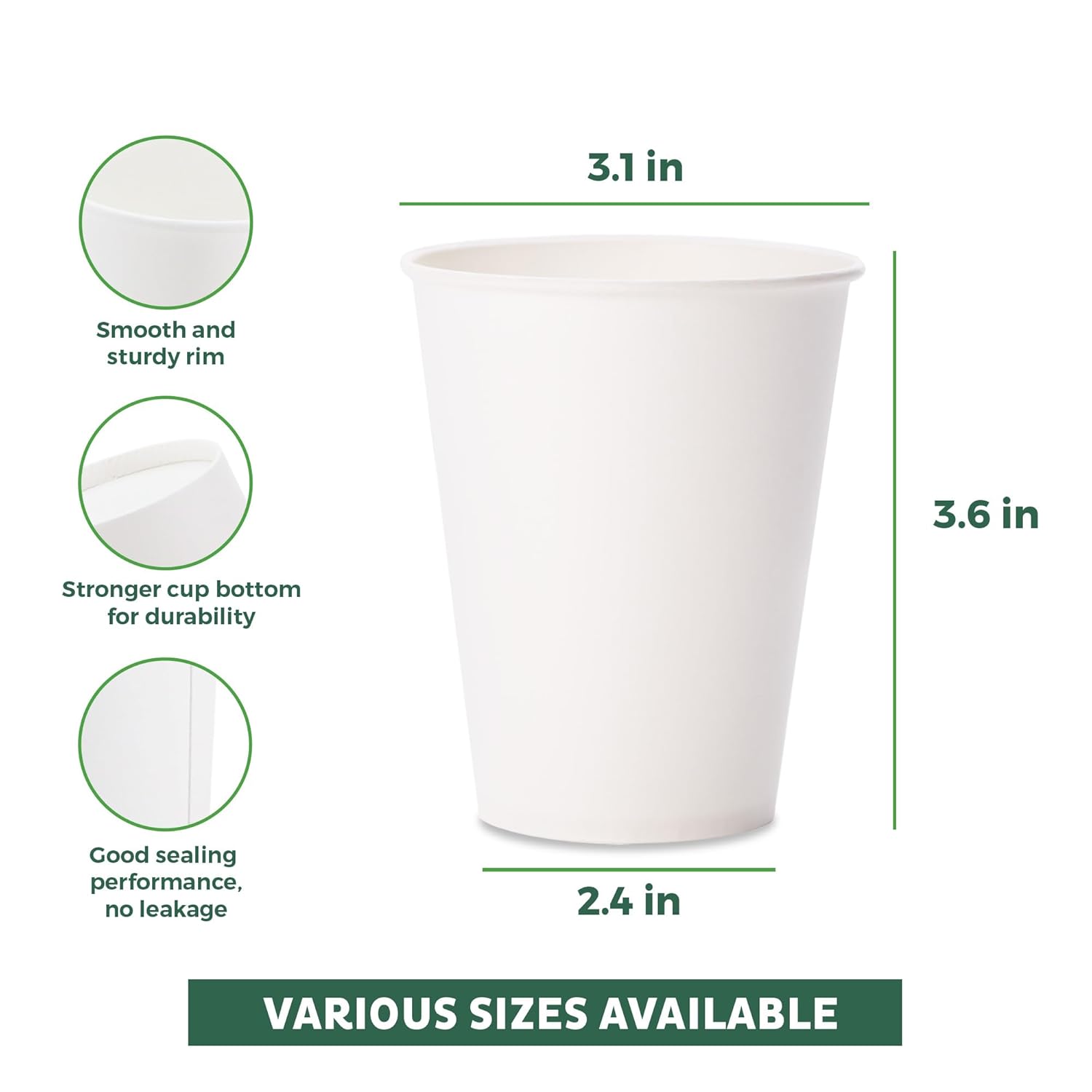 - Leak-Resistant Design - Made from thick, durable paper, our 8oz coffee cups are engineered to be leak-resistant for up to 7 days