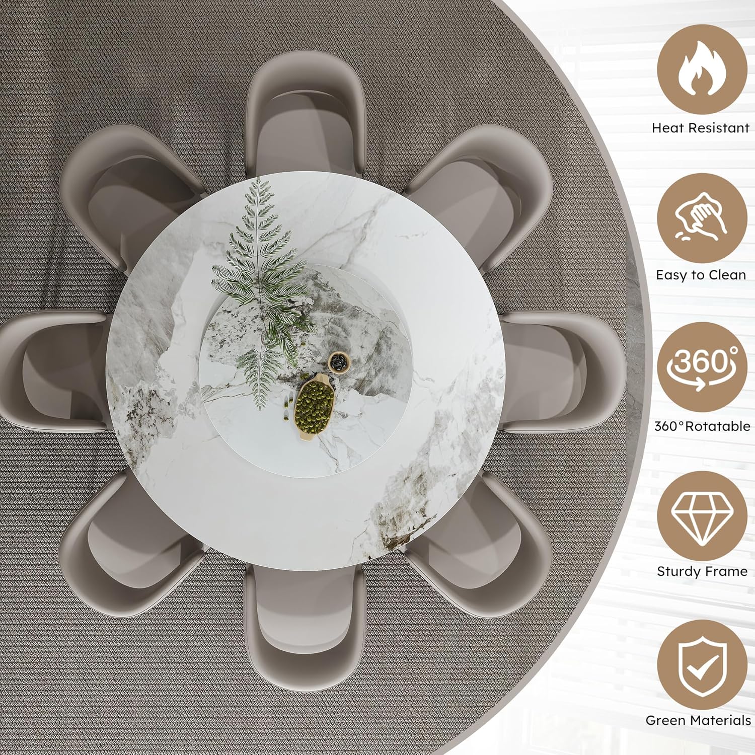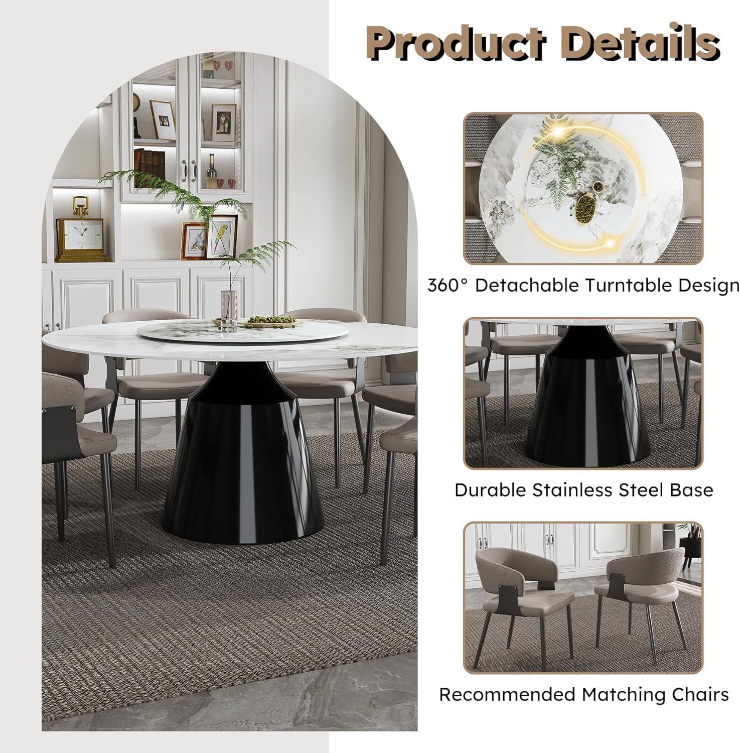- 【Round Dining Table】This dining table is 59 inches in size and 30 inches in height, made of sintered stone and stainless steel base, and is recommended for 6-8 people. The dining table with classic design can be used not only for kitchen dining, but also for living room, dining room, office, café, outdoor and other occasions