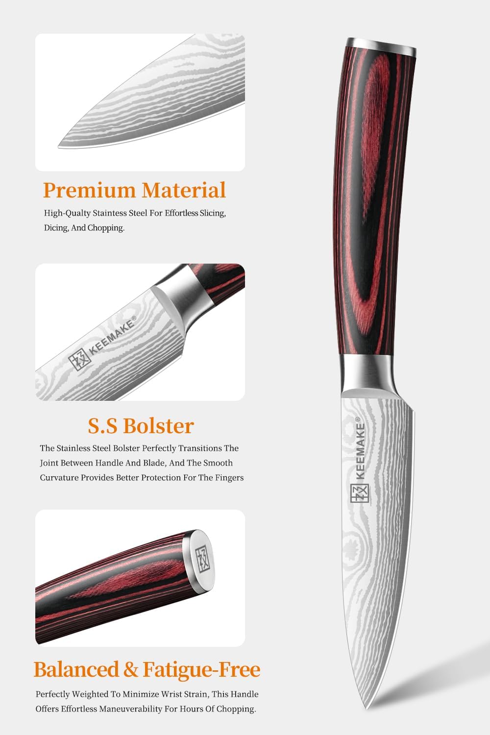 KEEMAKE 3.5 Inch Paring Knife - Ultra Sharp Fruit Knife High Carbon Stainless Steel Small Kitchen Knives for Peeling Slicing with Ergonomic Handle with Elegant Gift Box