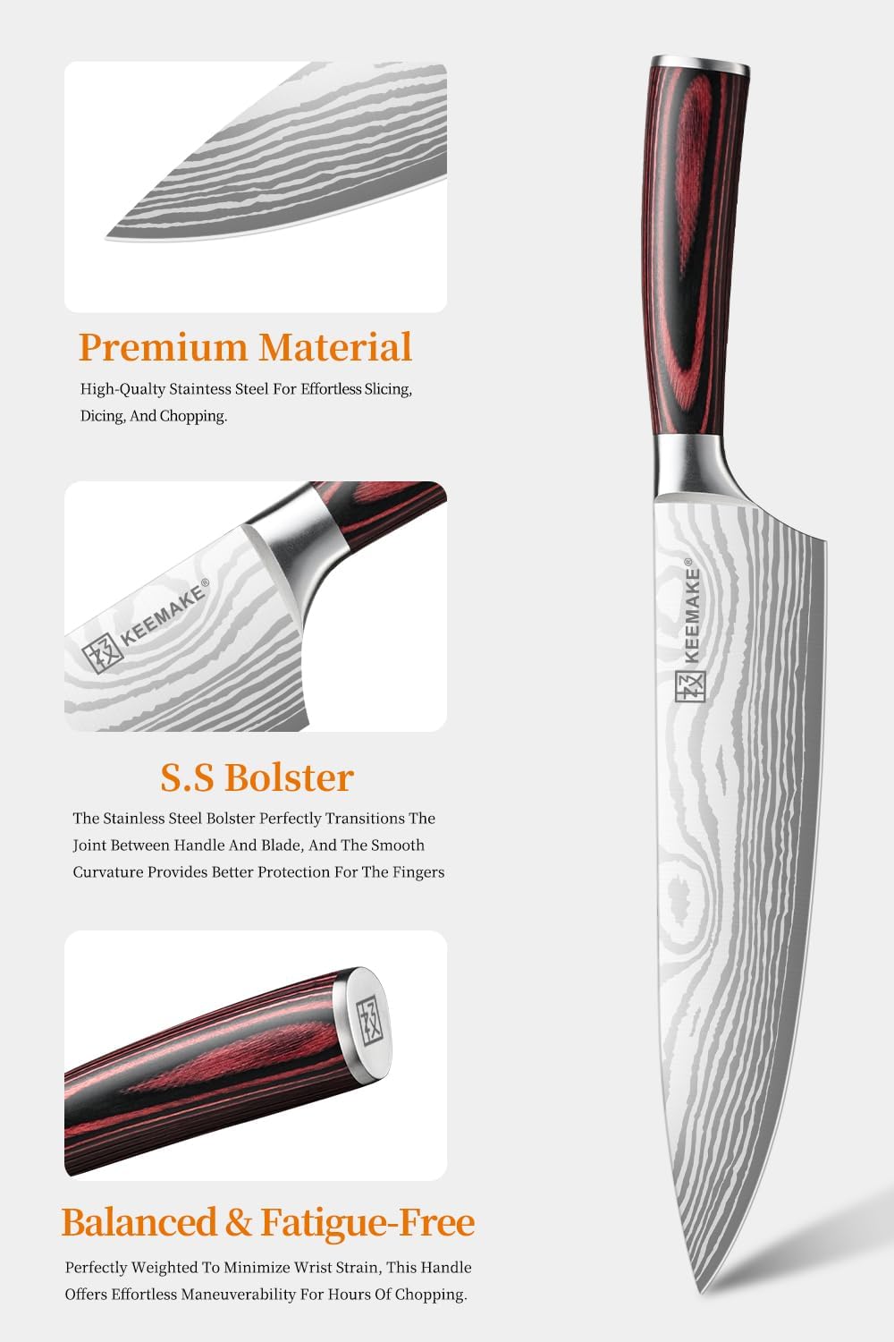 KEEMAKE Chef Knife 8 Inch - Ultra Sharp Kitchen Knife 1.4116 High Carbon Stainless Steel Blade, Ergonomic Handle, Professional Meat Knife for Home Cooking & Chefs, w/Sheath & Gift Box