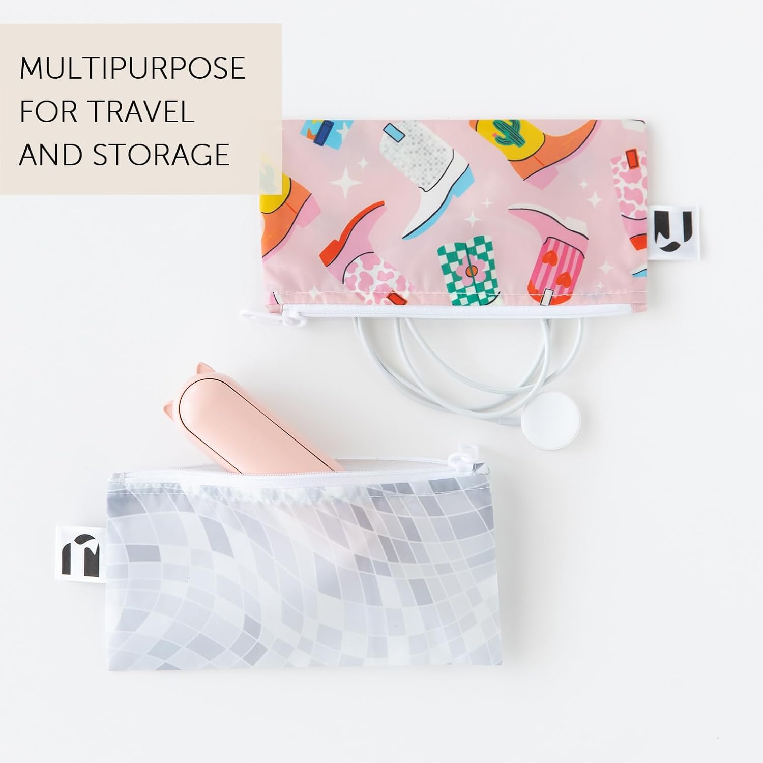 Roamio Reusable Sandwich and Snack Bags, for Kids School Lunch and for Adults Portion, Washable Fabric, Waterproof Cloth Zip Bag, Travel Pouch, Food-Safe Storage, 4-pack Set Cowgirl Boots and Disco