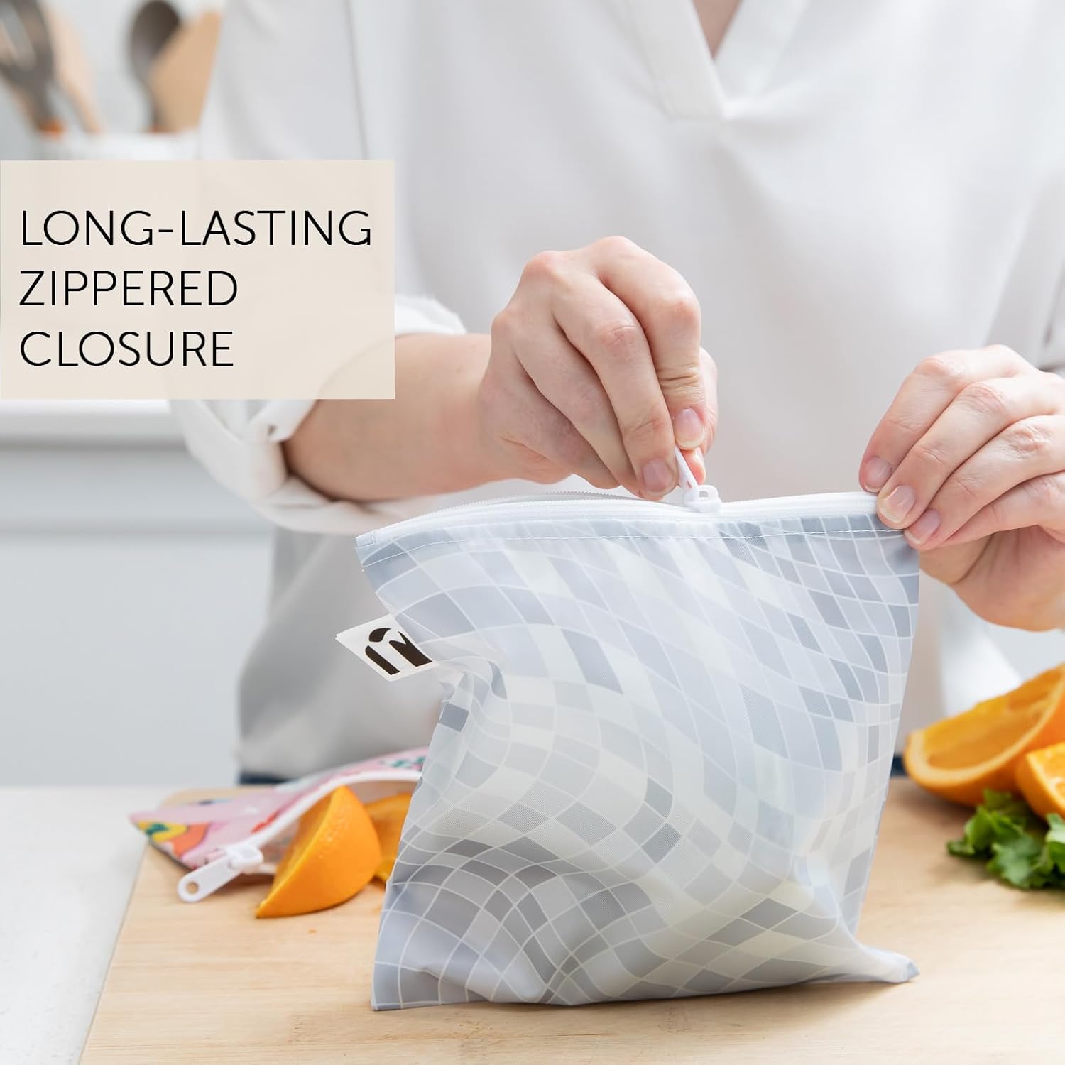 - REUSE AND REDUCE WASTE β Made from our original waterproof food-safe fabric with zipper closure; sandwich bags are large enough to fit a bagel; not just for lunch, bags make great organizers for storage and travel; stash inside lunch, purse or travel bag