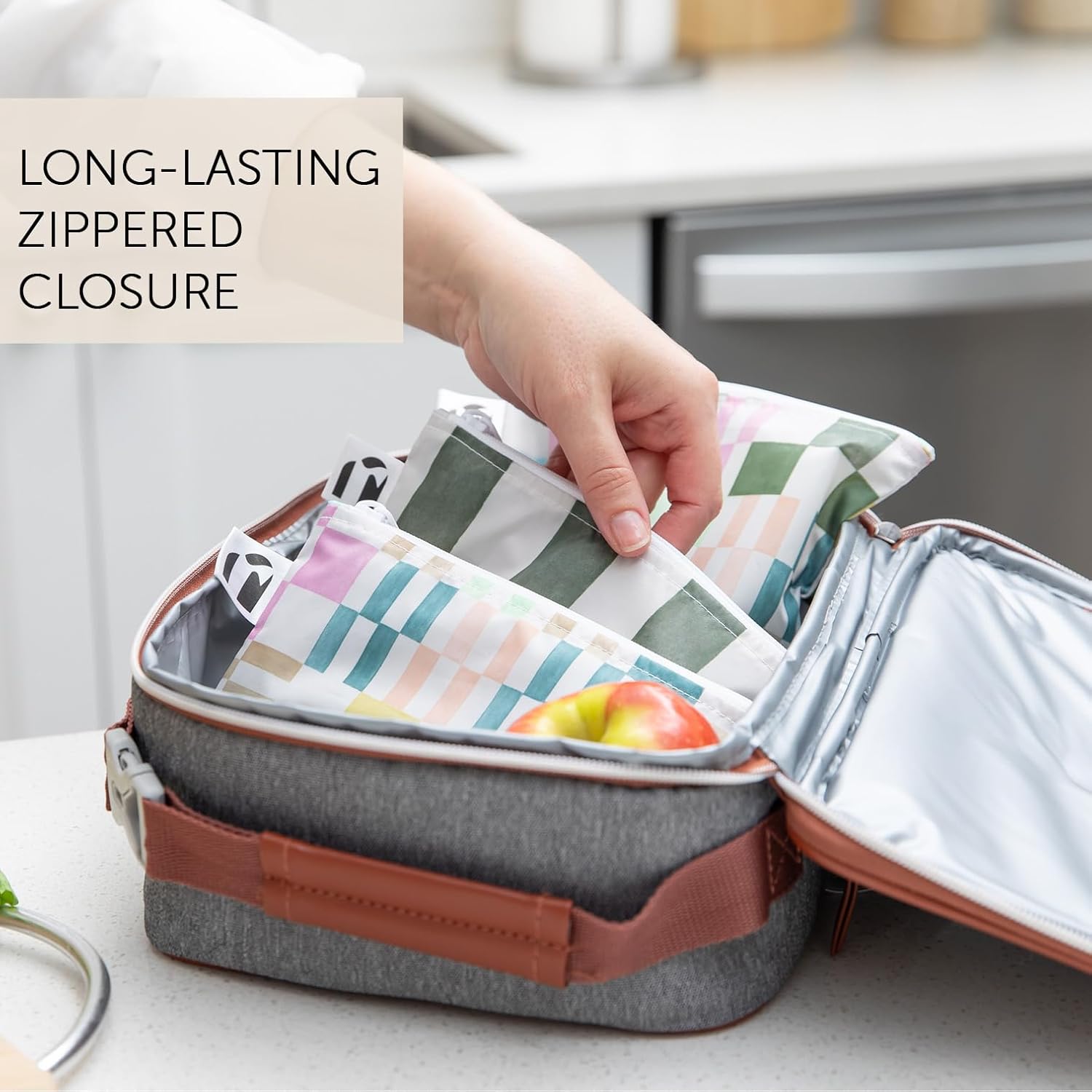 - REUSE AND REDUCE WASTE β Made from our original waterproof food-safe fabric with zipper closure; sandwich bags are large enough to fit a bagel; not just for lunch, bags make great organizers for storage and travel; stash inside lunch, purse or travel bag