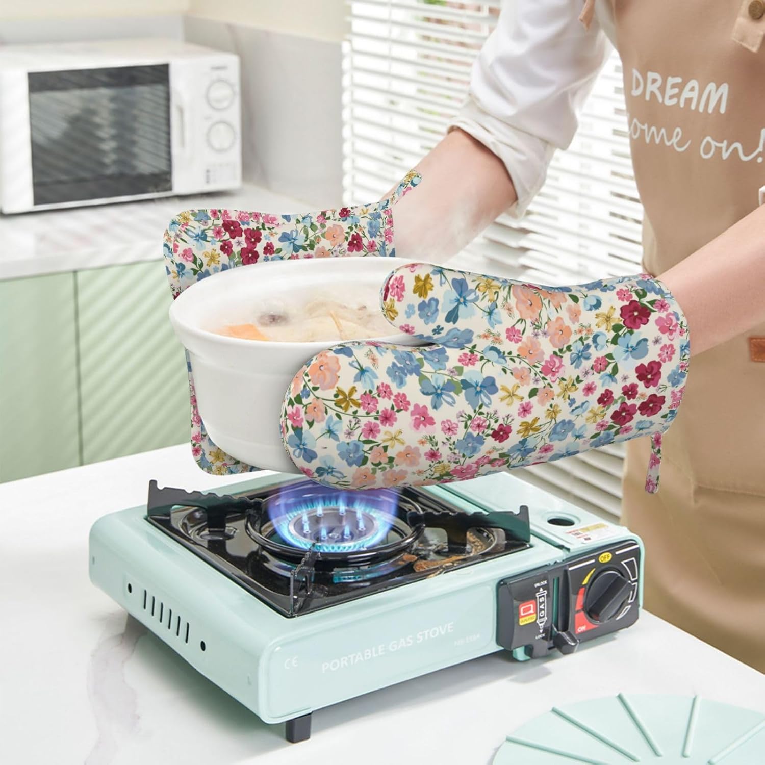 - HEAT RESISTANT: The wild flowers floral meadow silicone oven mitts and non-slip pot holders set are heat resistant at 392 F/200 C because of their durable construction so they can effectively keep you protected from burning while you enjoy cooking and grilling