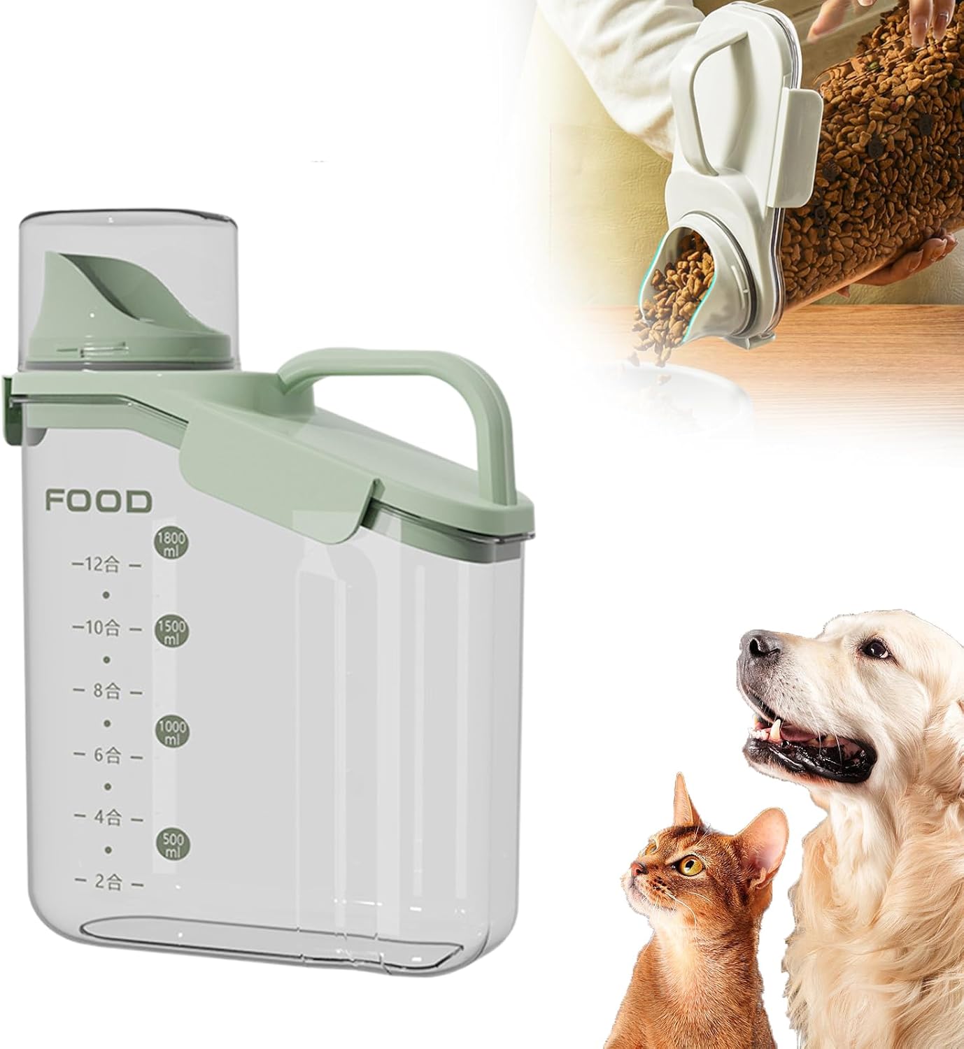 - 【Large Pouring Spout & Measuring Cup】Our portable food container features a bigger spout making it a breeze to dispense your food even with large particles. (The other brand pouring spout is small and pour dog food or other large particles of food get stuck). Comes with a measuring cup which is easy to screw on the spout, to keep your food fresh and dry.