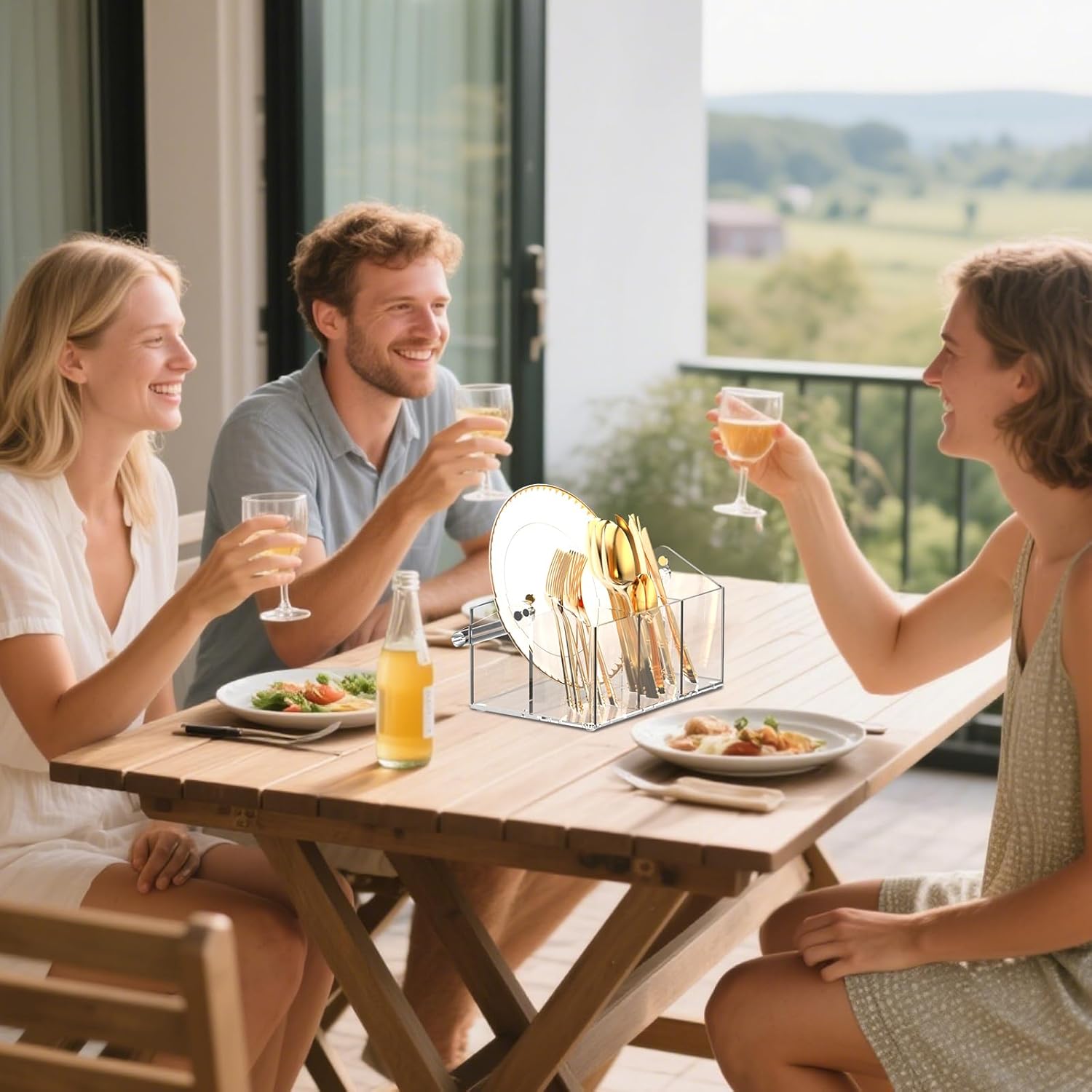 Acrylic Utensil Caddy.Silverware Organizer & Utensil Holder-Heavy-Duty Countertop Cutlery Caddy for Spoons, Forks, Knives, Napkins, Plates | Space-Saving Table, Buffet, Picnic Party Essential