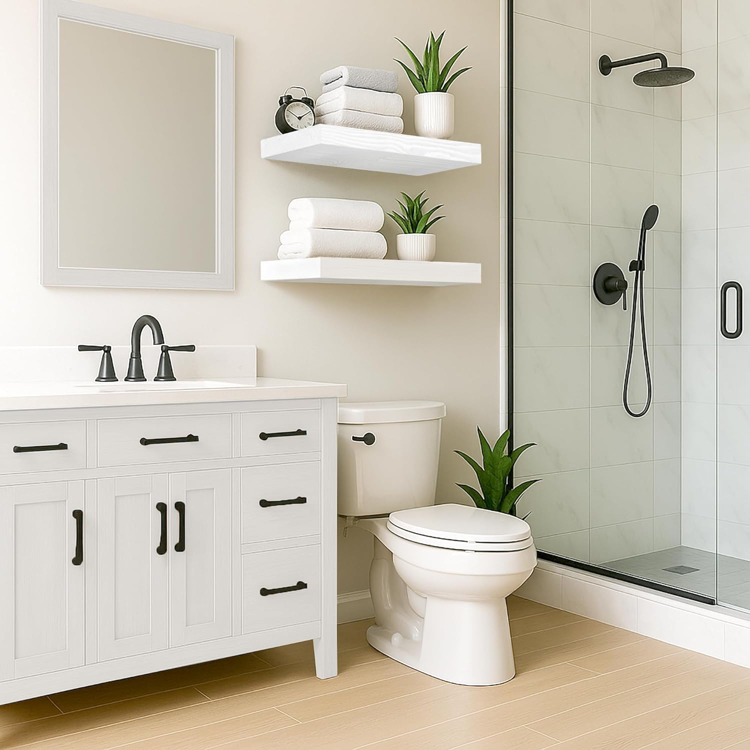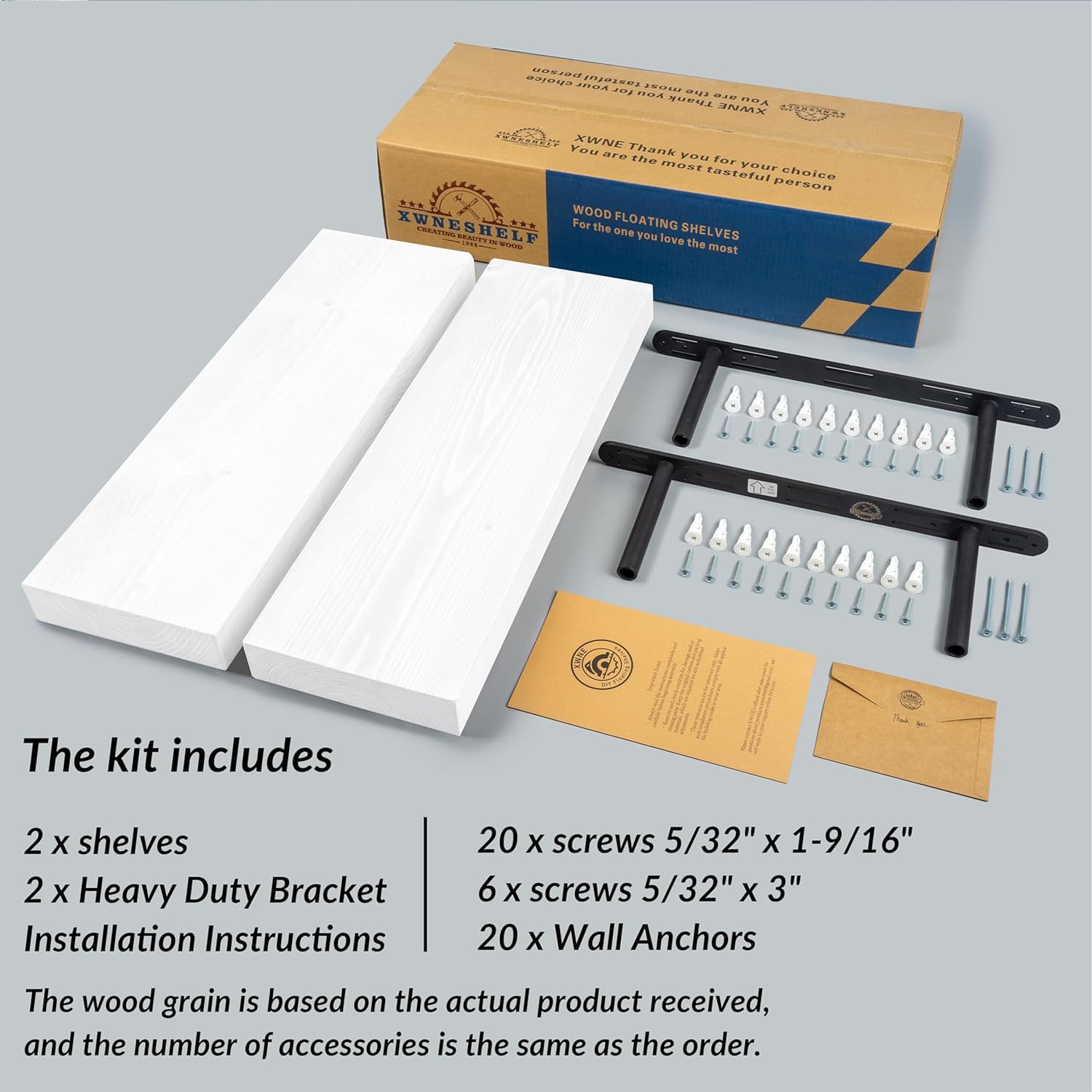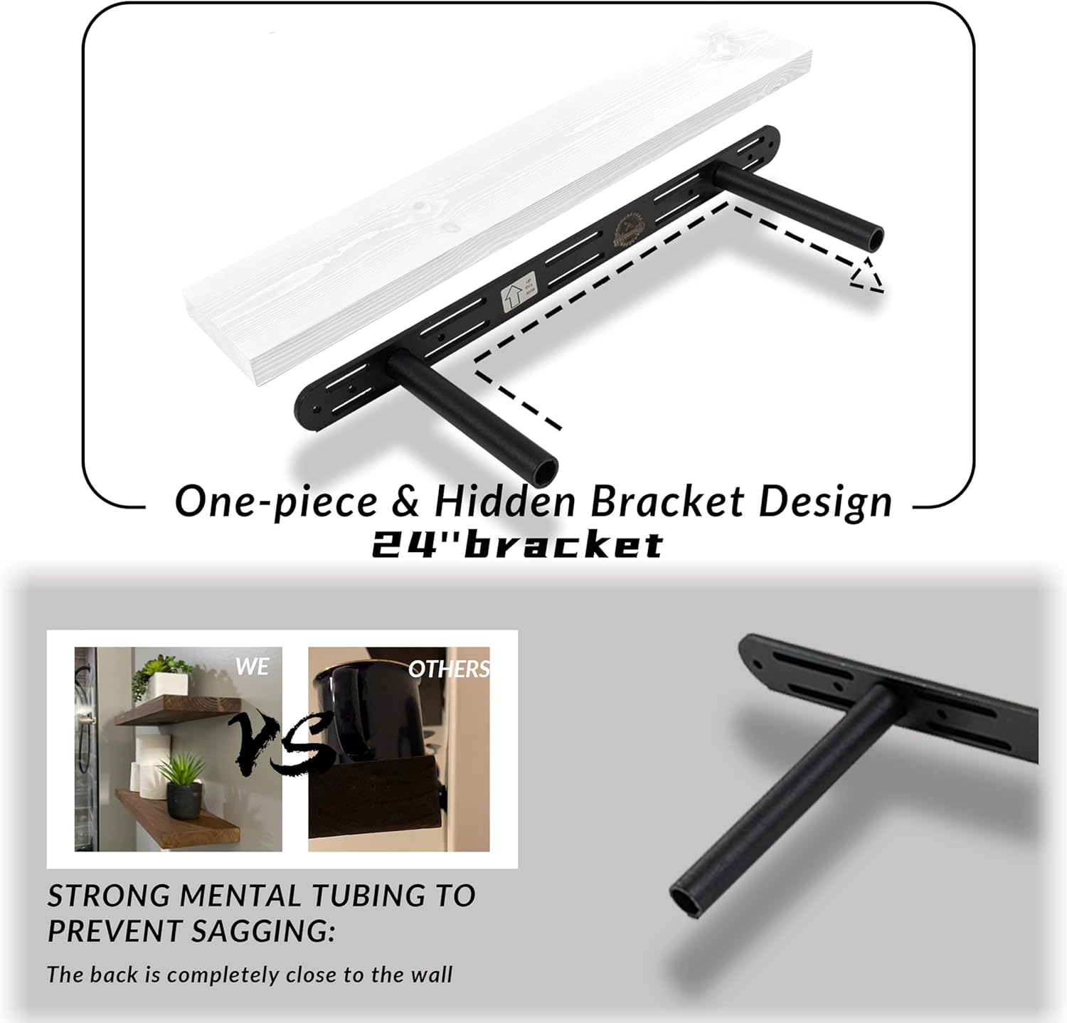 Rustic Floating Shelves 24 inch Long 8 inch deep Set of 2, Solid Wood Wall Shelves for Bedroom Living Room Kitchen,Book Shelf for Wall, Wall Mounted Shelves with Hidden Bracket- White