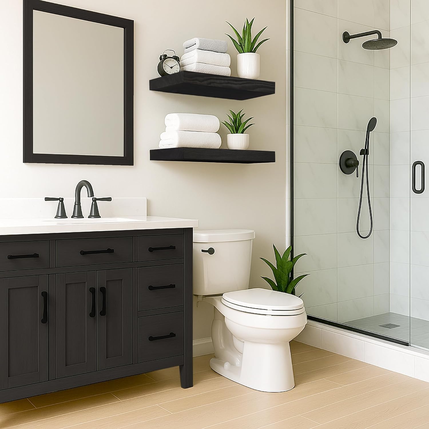 - Seamless Integration: The neutral finish of our floating shelf seamlessly integrates with a wide array of design aesthetics, making it an ideal addition to any home. Enhance your space with this functional piece that combines storage and style effortlessly.