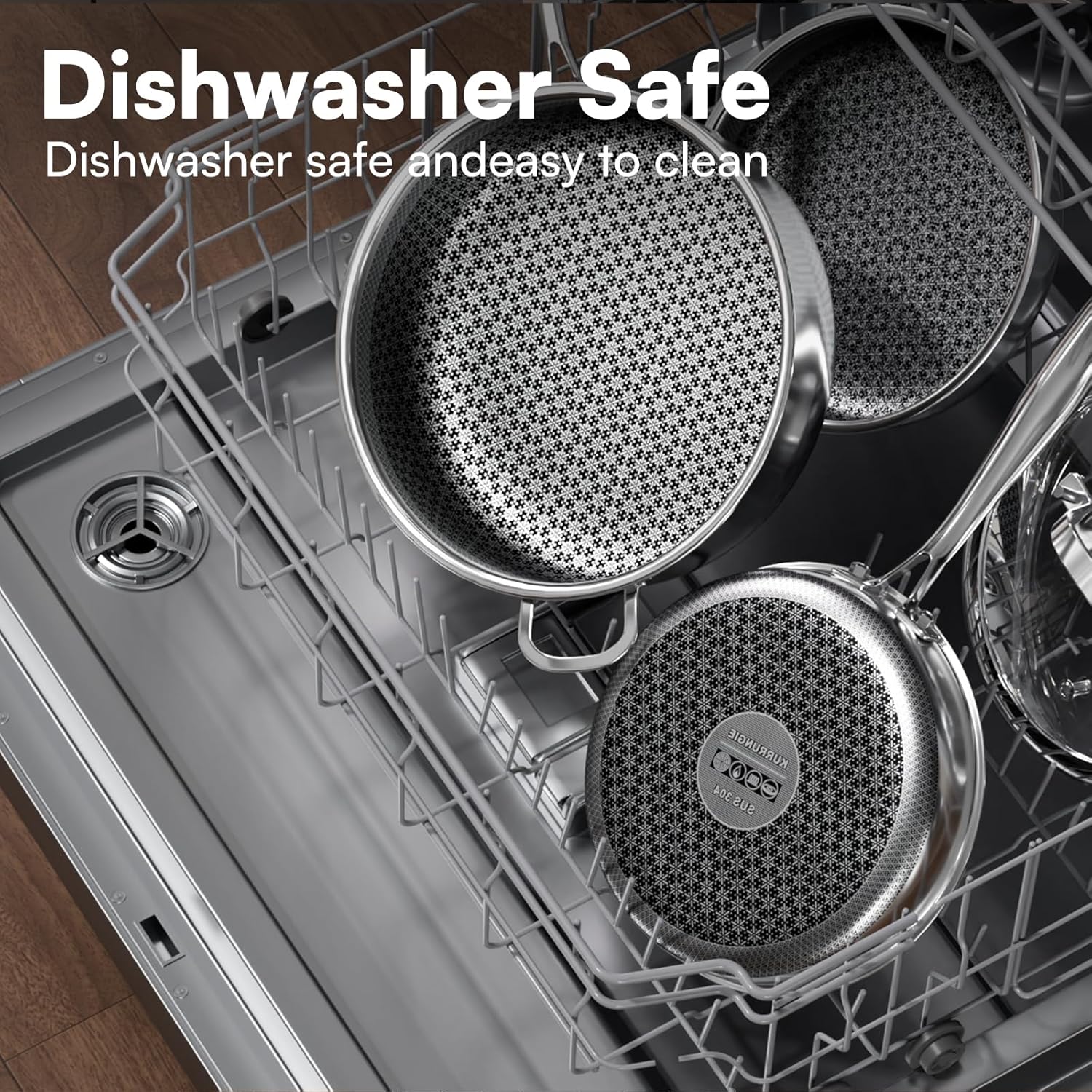 - Special Feature : 5-Layer Stainless Steel, All Stovetops Compatible, Cool Handle, Dishwasher Safe, Tempered Glass Lid