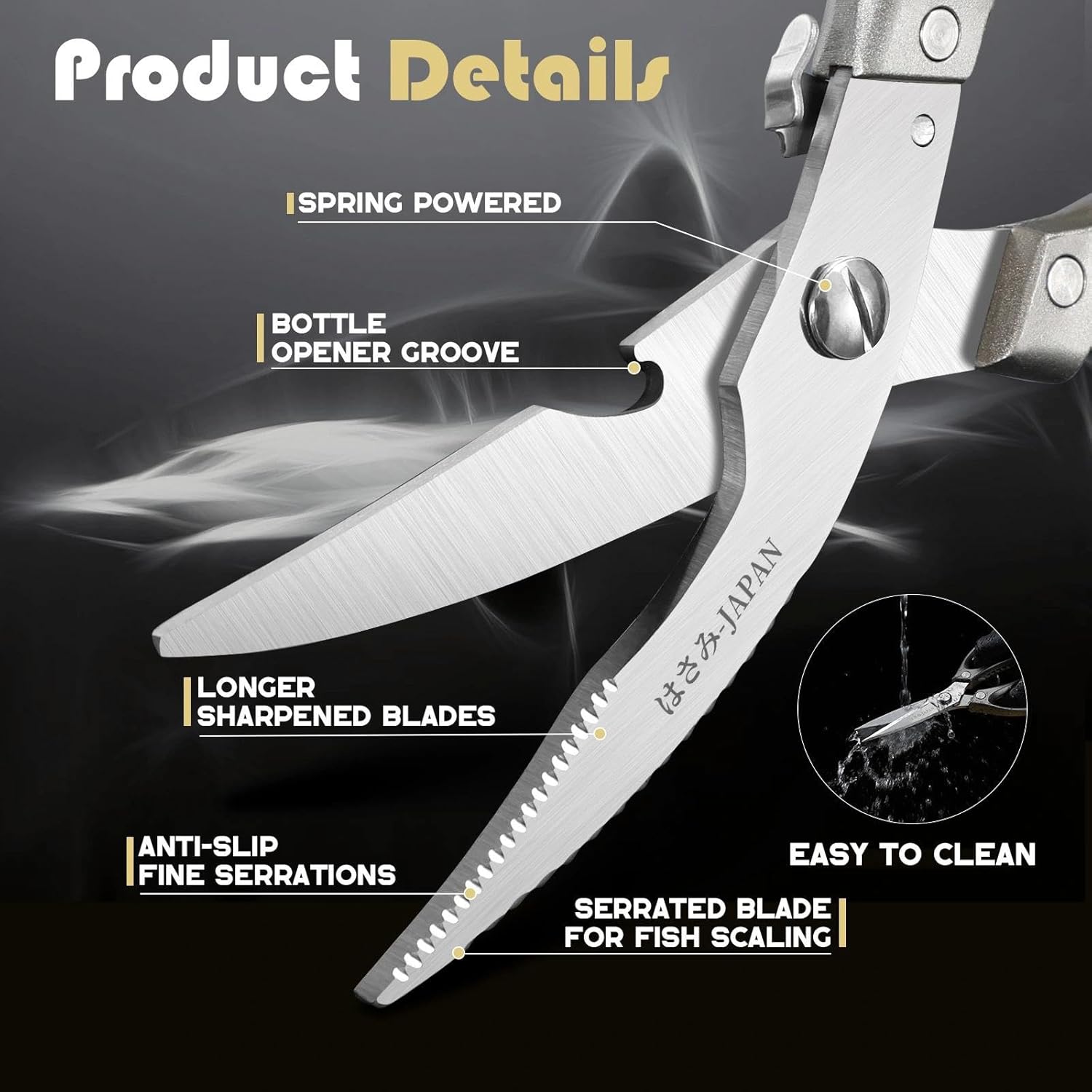 - 【Excellent quality】 The kitchen shears set crafted from high-chromium stainless steel offer razor-sharp cutting power and exceptional durability. The poultry shears upgraded 3.5mm thickened blades are engineered to cut through poultry bones, fish fin, or tough meat tendons with ease.The precision kitchen shears upgraded with a 15° cutting angle, ensure clean, smooth cuts—perfect for herbs, baking paper, and packaging without tearing.