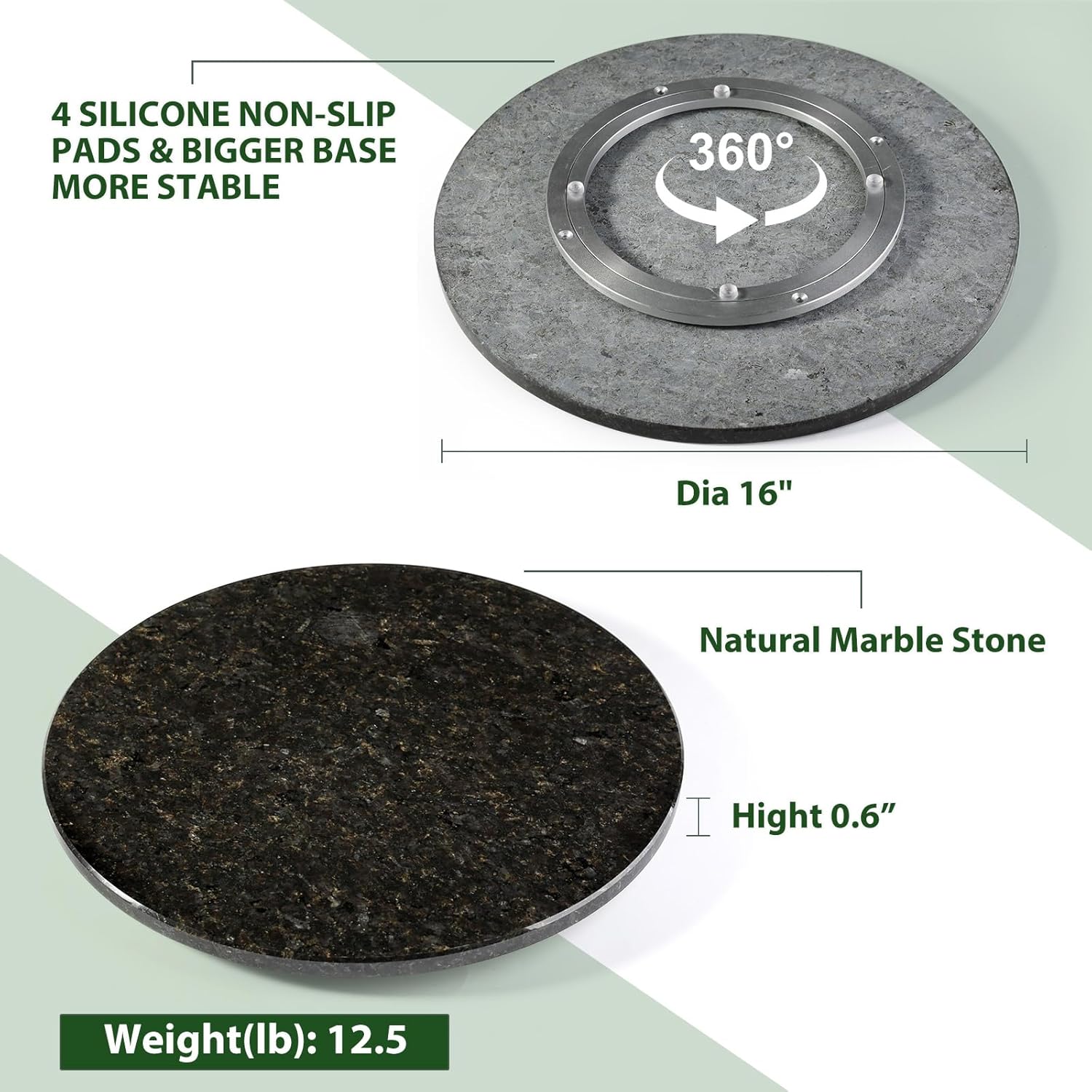 - SAVE MONEY: You will get a round marble tray and a turntable bearing. Not only a lazy susan for table top but also a serving tray for fruits and desserts when you need. You can even go DIY and make your lazy susan by turntable bearing without our marble tray and attach your favorite serving dishes or bookcases to this lazy susan hardware. With a DIY lazy susan, everything is within arm’s reach!