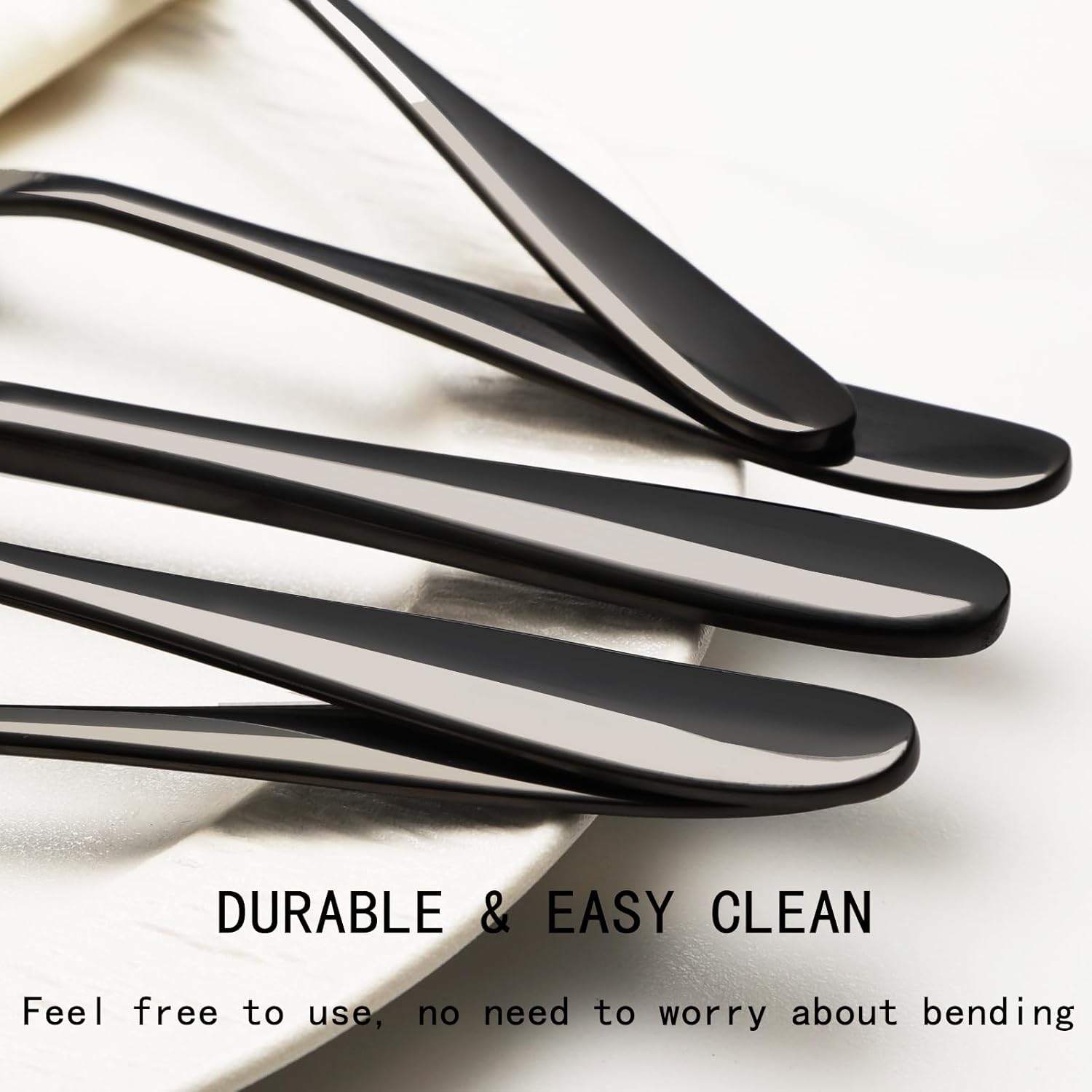 40-Piece Black Silverware Set, Flatware Set for 8, Food-Grade Stainless Steel Tableware Cutlery Set, Mirror Finished Utensil Sets for Home Restaurant, Forks Spoons and Knives Set, Dishwasher Safe