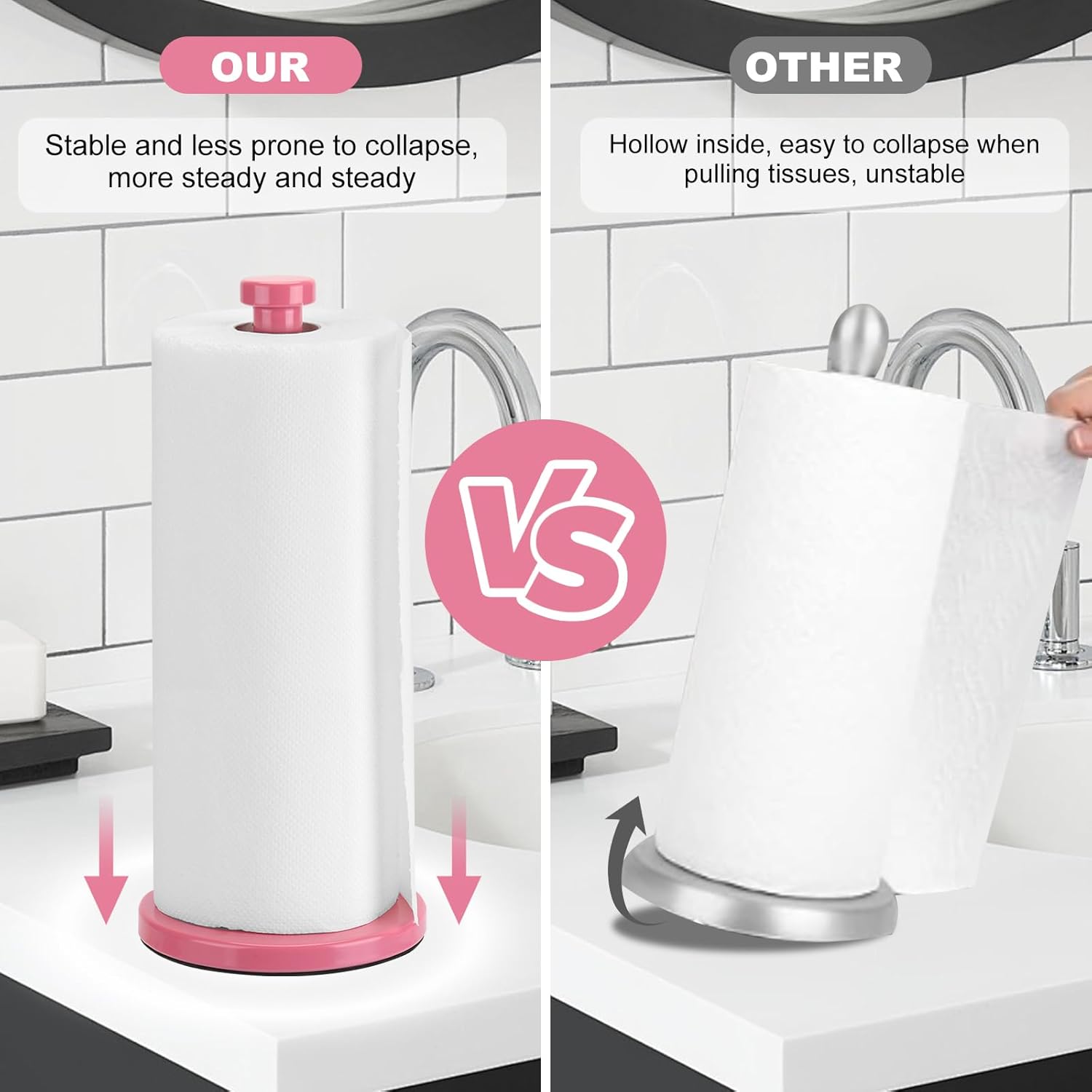 - Weight 1.2 lbs, The sturdy structure makes standing paper towel holder stay in its place,Not easy to tip over