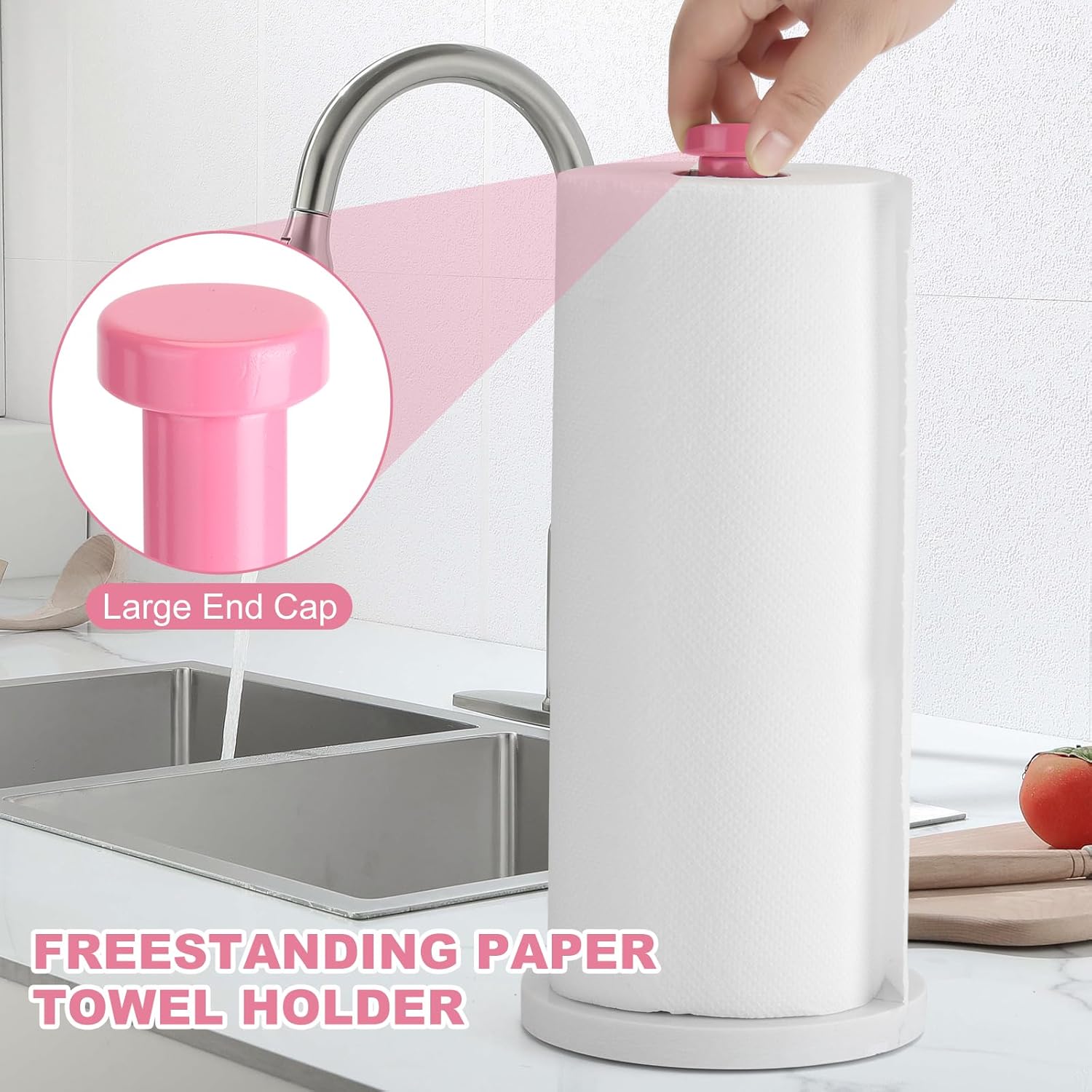 Standing Paper Towel Holder, Kitchen Paper Towel Roll Holder- for Bathroom Kitchen Countertop with Weighted Marble Base for One-Handed Operation (Pink), Pink Paper Towel Holder